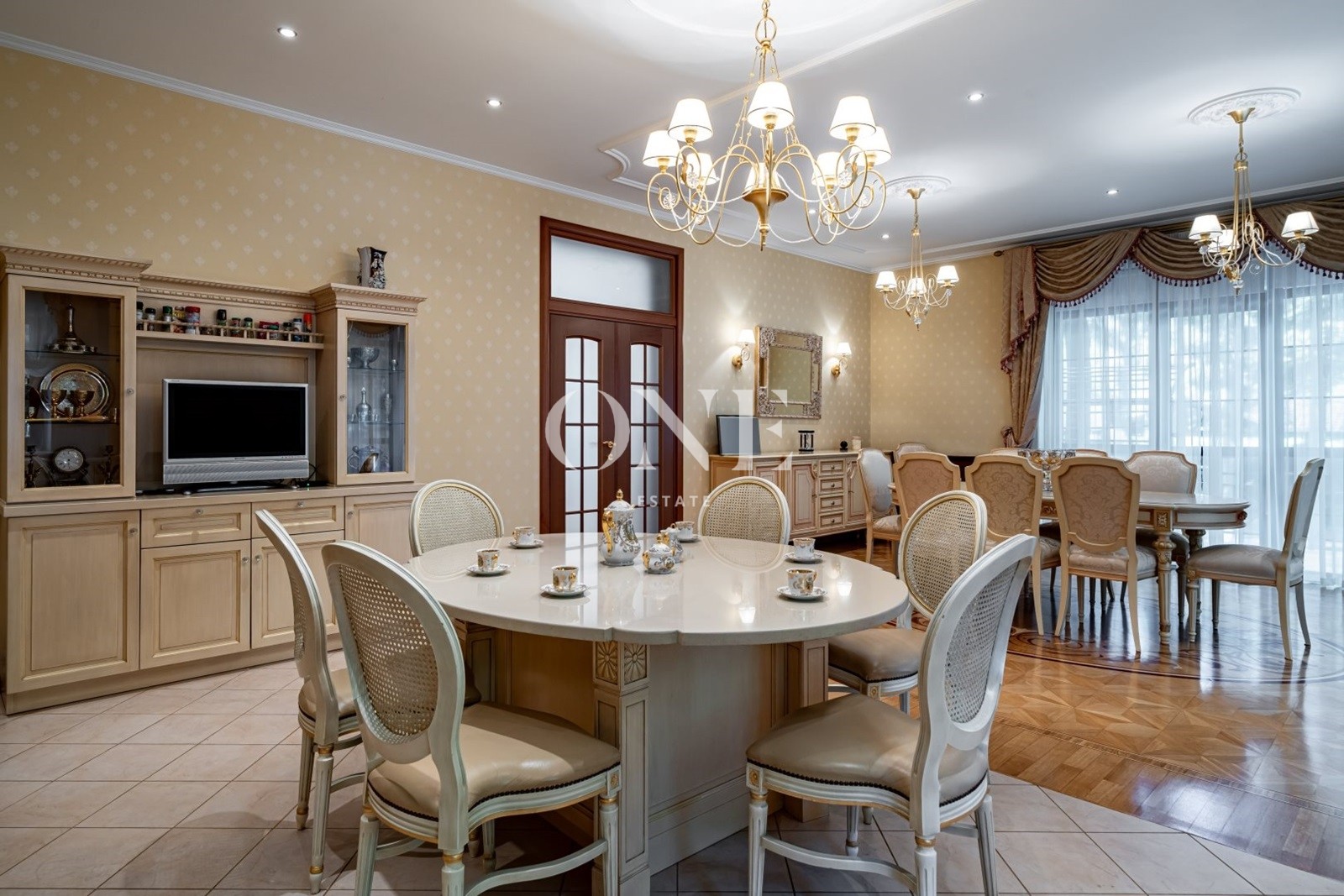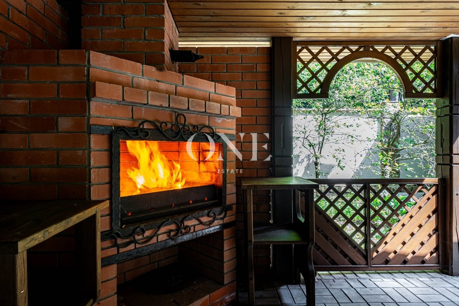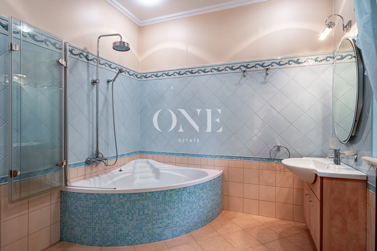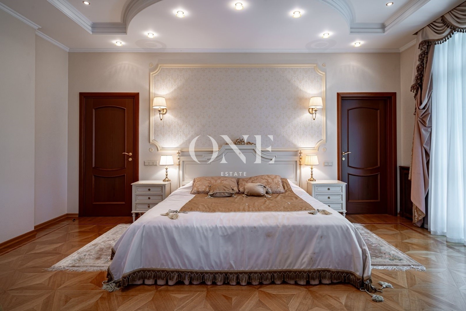 На участке: гараж на 2 м/м с квартирой для персонала на втором этаже, двухэтажная баня с бильярдом, беседка барбекю, навес на 4 м/м.