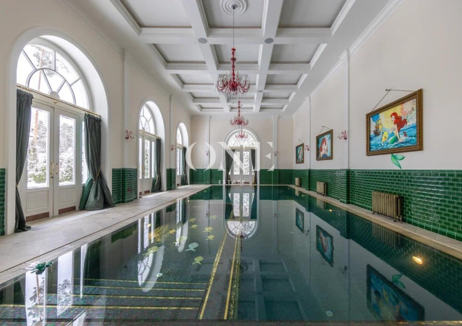 бассейн, хамам, сауна, столовая, кабинет, гостиная, гардеробная, детская гардеробная, летнее патио с камином и BBQ.