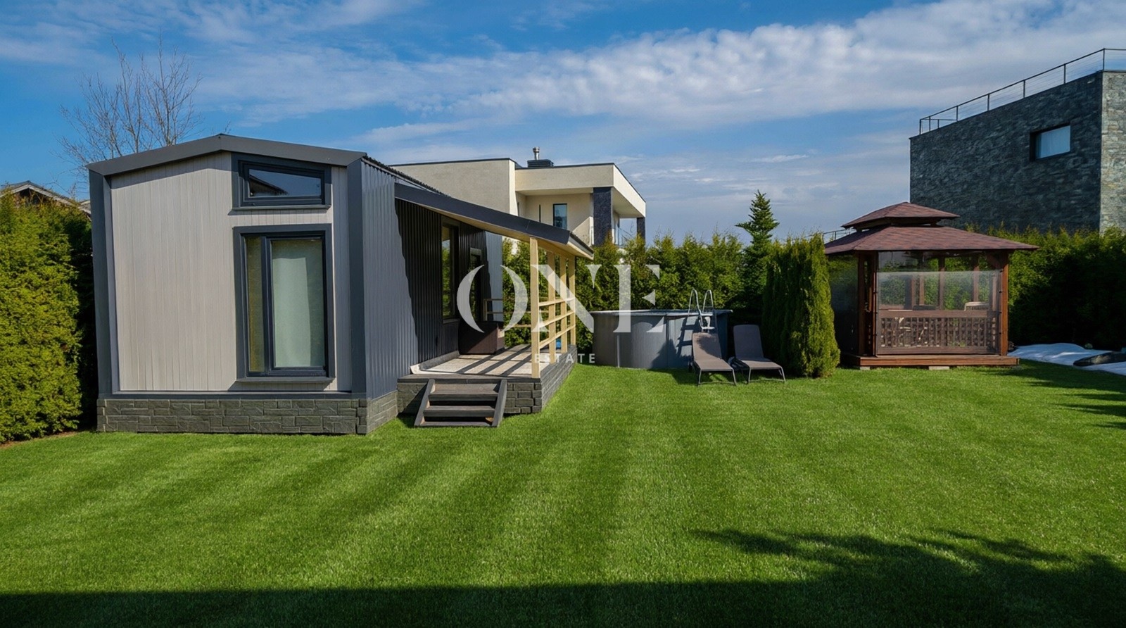 По периметру высажены туи — участок закрыт и уютный. На территории растут кедр и сосны. Отдельный дом для персонала.