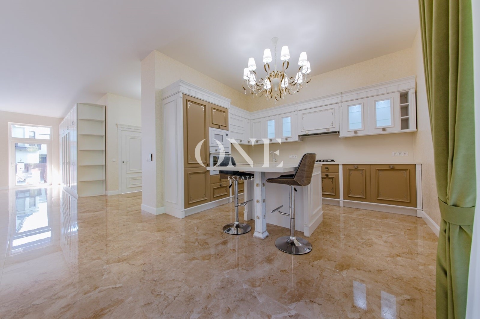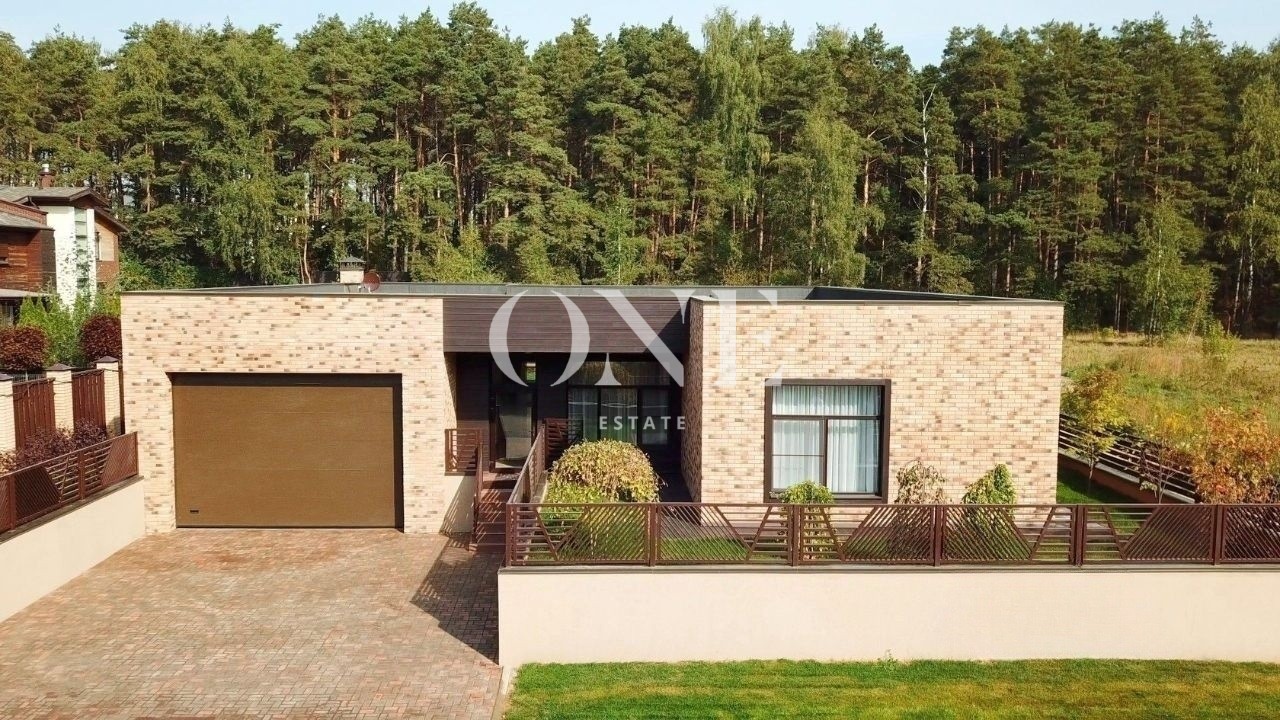 Дом построен из кирпича в 1 этаж. Высокое качество строительства. Фасад облицован клинкерной плиткой под кирпич. Выполнена качественная отделка в современном стиле. Установлены система водоочистки, полы с водяным подогревом и кондиционирование.