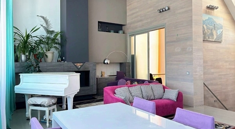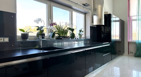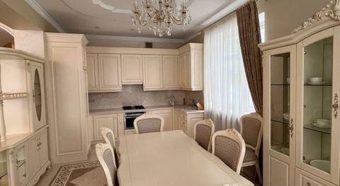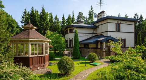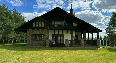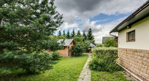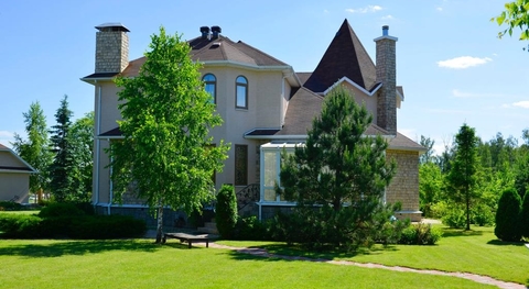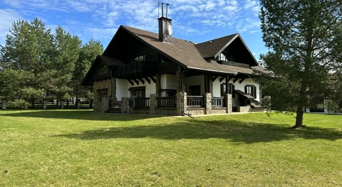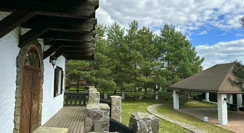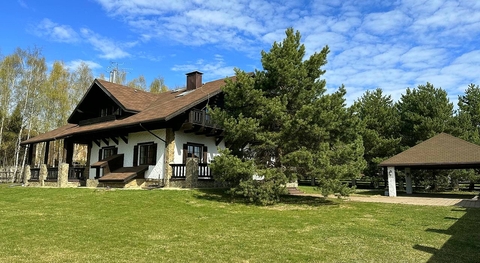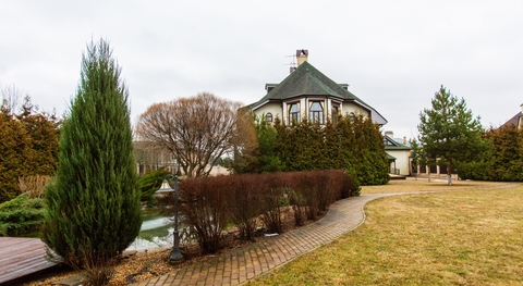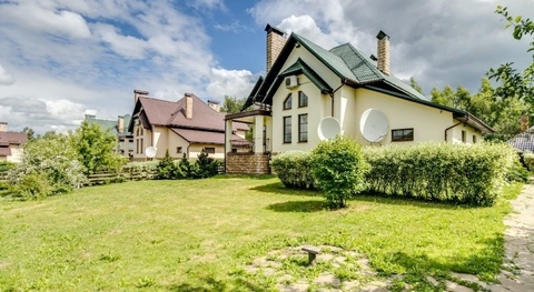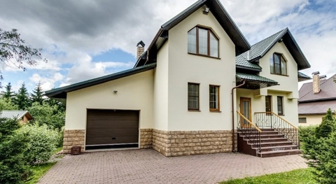 Четыре спальни, три санузла, второй свет в гостиной, в которой находится зона ТВ и дровяной камин. Кухня оборудована итальянской мебелью и всей необходимой техникой. Есть сауна, гардеробная, постирочная, большая кладовая. В коттедже имеется роскошная веранда (23 кв.м) и два больших балкона (23 и 19 кв.м). Эксплуатируемые чердачные помещения площадью 70 кв.м. Своя огороженная придомовая территория с газонами и зелеными насаждениями.