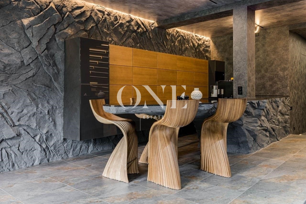 В отделке использованы элитные, натуральные материалы. Всё укомплектовано современным оборудованием, умным домом и мебелью по авторским эскизам.