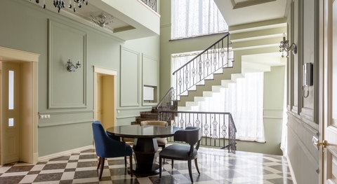 3/4 уровень: двухуровненный жилой блок, который состоит из спальни, с/у и жилой комнаты. На этом уровне, так же расположены бильярд, домашний кинозал и зимний сад.