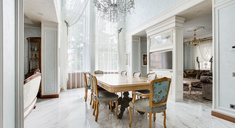 холл, мастер-спальня со своей гардеробной и с/у, гостиная, терраса, 4 спальни с гардеробными и с/у, 3 спальни с с/у., квартира для персонала, кухня.