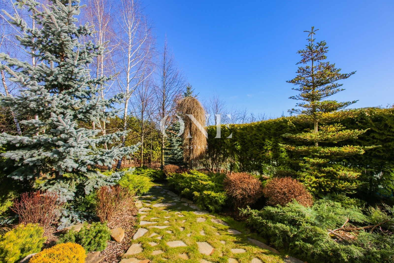 На приусадебном участке выполнен ландшафтный дизайн, расположен открытый теннисный корт и установлена беседка для барбекю на 12 персон. Дополнительно на территории построен гараж на 3 машиноместа с квартирой для персонала.