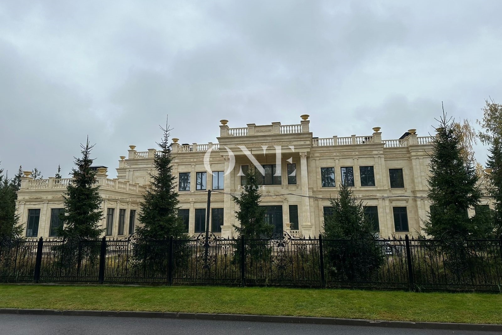Фасад выполнен из натурального камня, украшен колоннами, балюстрадами и барельефами, что подчеркивает классический стиль и изысканность архитектуры. Большие панорамные окна и высокие потолки создают ощущение просторности и света.