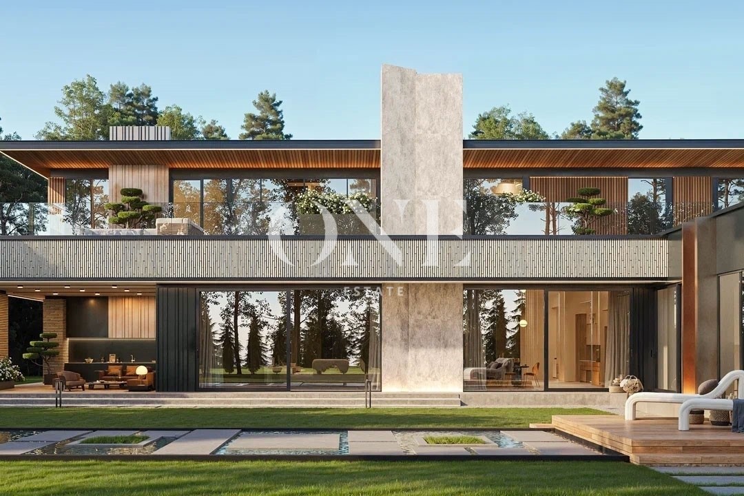 Современный двухэтажный загородный дом площадью 2000 кв. м расположен на участке в 37 соток с захватывающим видом на гольф-поле в престижном коттеджном поселке Agalarov Estate.