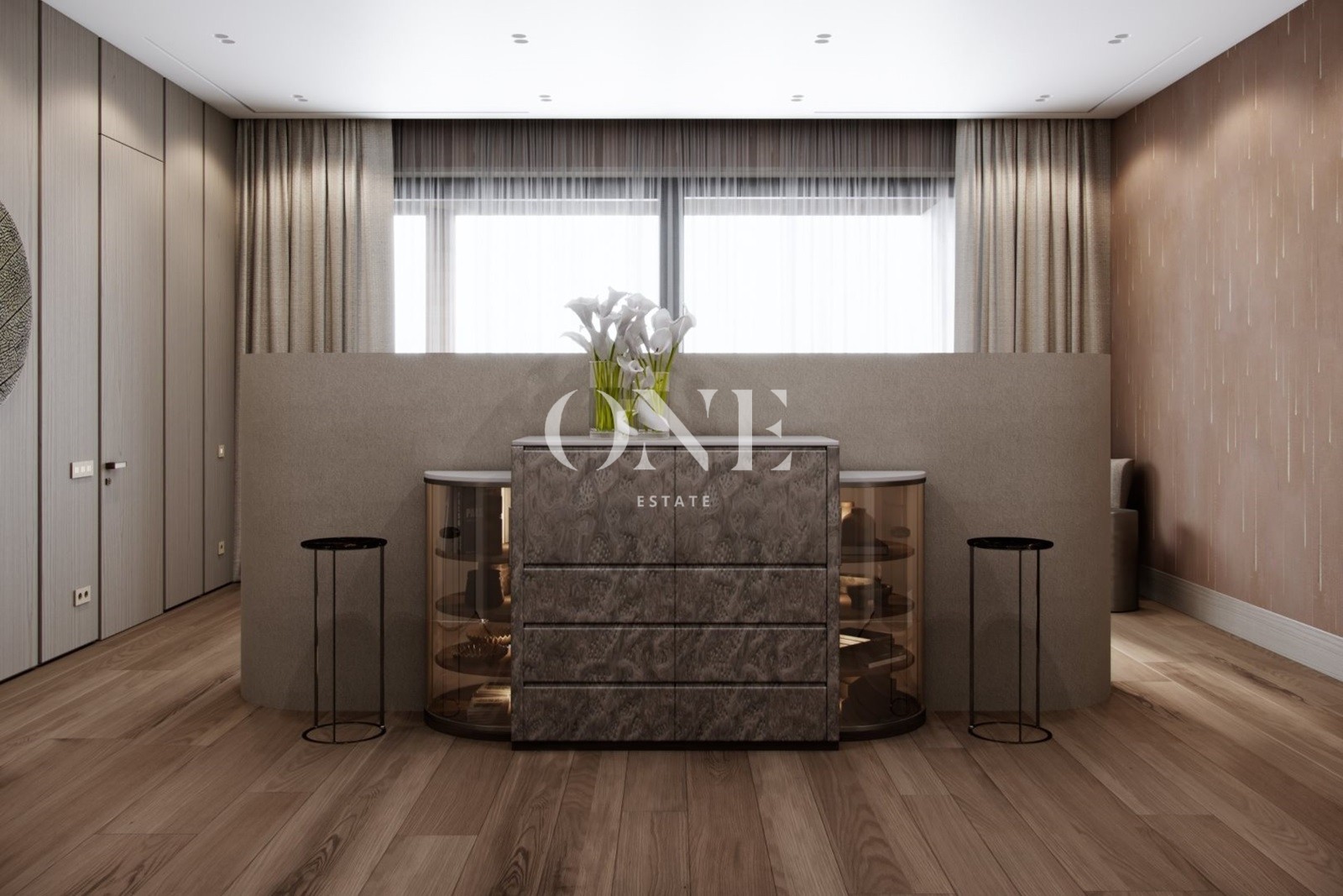 холл, гостиная-столовая-кухня, рабочая кухня, спальня с гардеробной и с/у, кабинет, гардеробная, гараж, с/у, бассейн, душевая, сауна, хаммам, тренажерный зал, серверная, котельная, крытая терраса.