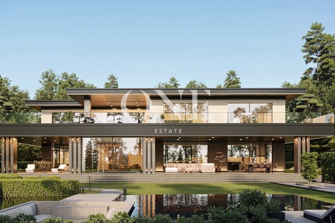 Современный двухэтажный дом общей площадью 1900 кв.м, выполненный с панорамным остеклением, которое позволяет наслаждаться потрясающими видами на гольф-поле в элитном поселке Agalarov Estate.