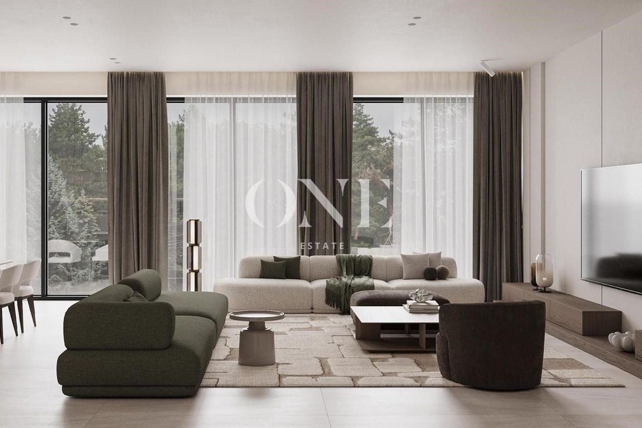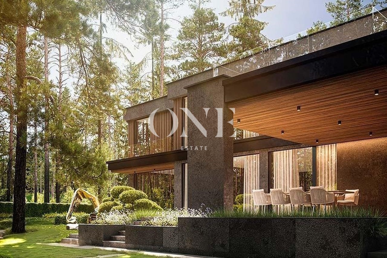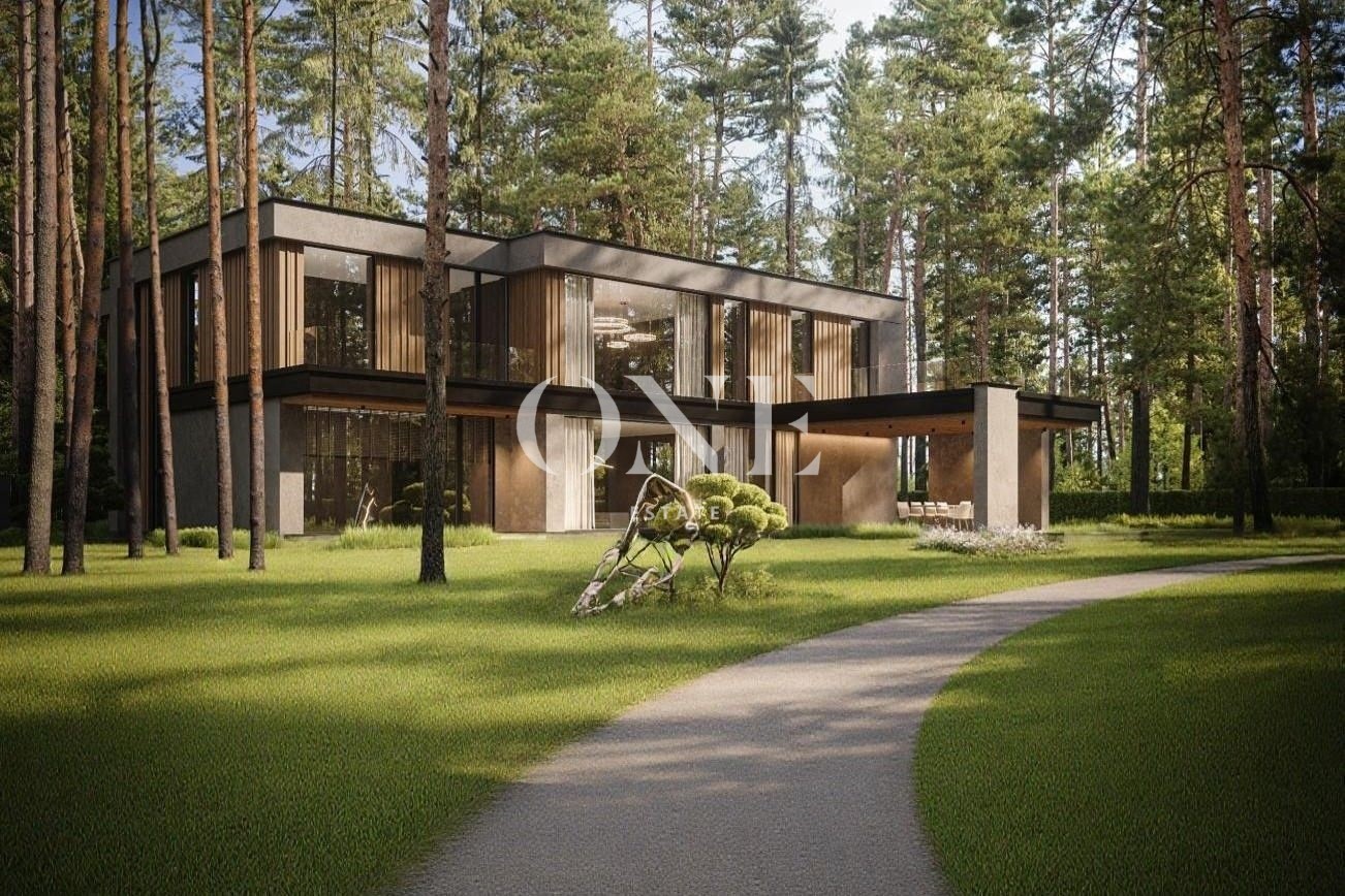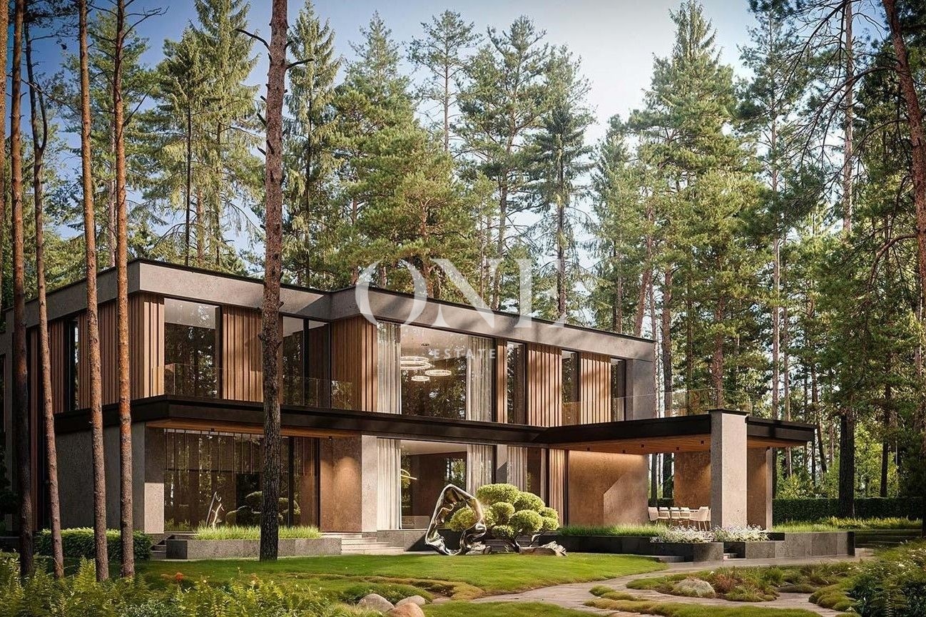тамбур, холл с лестничной клеткой, кухня, гостиная-столовая с панорамным остеклением, гостевой с\у, гостевая спальня с гардеробной и с\у, сауна с зоной СПА, котельная, рабочая кухня, блок персонала с кухней, спальней и с\у, 3 летних террасы, крытая парковка на 2 м\м;