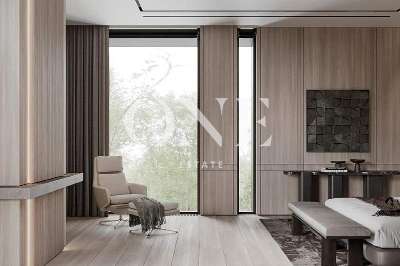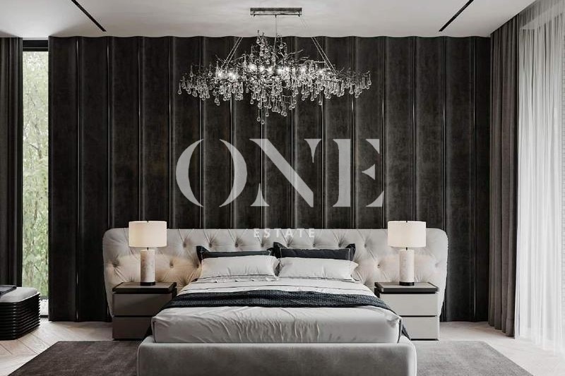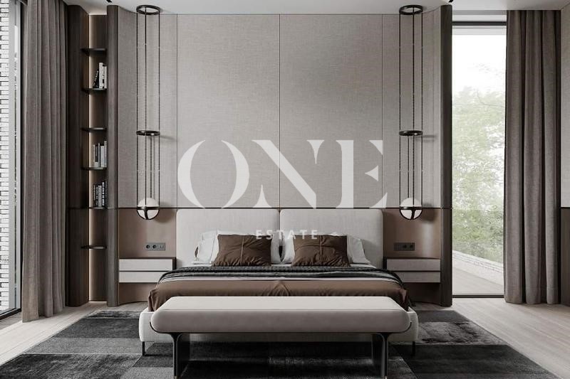 лифт, мастер блок: мужская зона: спальня с с/у, гардеробная, кабинет, зона женская: спальня с большим гардеробом, с/у, и выходом на большую просторную террасу, спортзал, 2 детские спальни со своими с/у и выходом на просторную террасу.