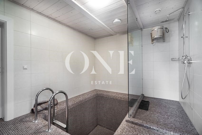 холл, гардеробная, гостевой санузел, кабинет с санузлом / гостевая спальня, гостиная с камином, кухня-столовая с выходом на террасу с зоной барбекю, SPA (сауна, купель, душевая, с/у, комната отдыха), постирочная, кладовая, гараж на 2 м/м с мойкой для машин.