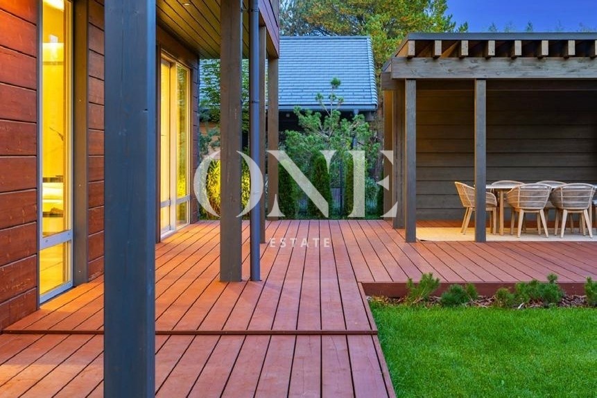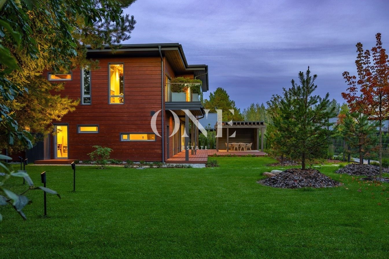 Двухэтажный дом премиум-класса в коттеджном поселке Gorki Lake 529 кв.м. на земельном участке 11 соток спроектирован архитектором с мировым именем Matti Iiramo с учетом теневого проектирования.