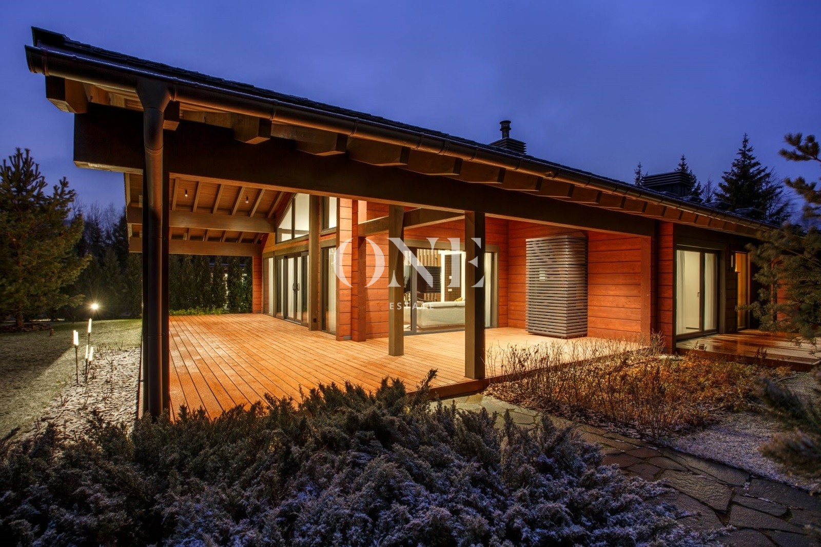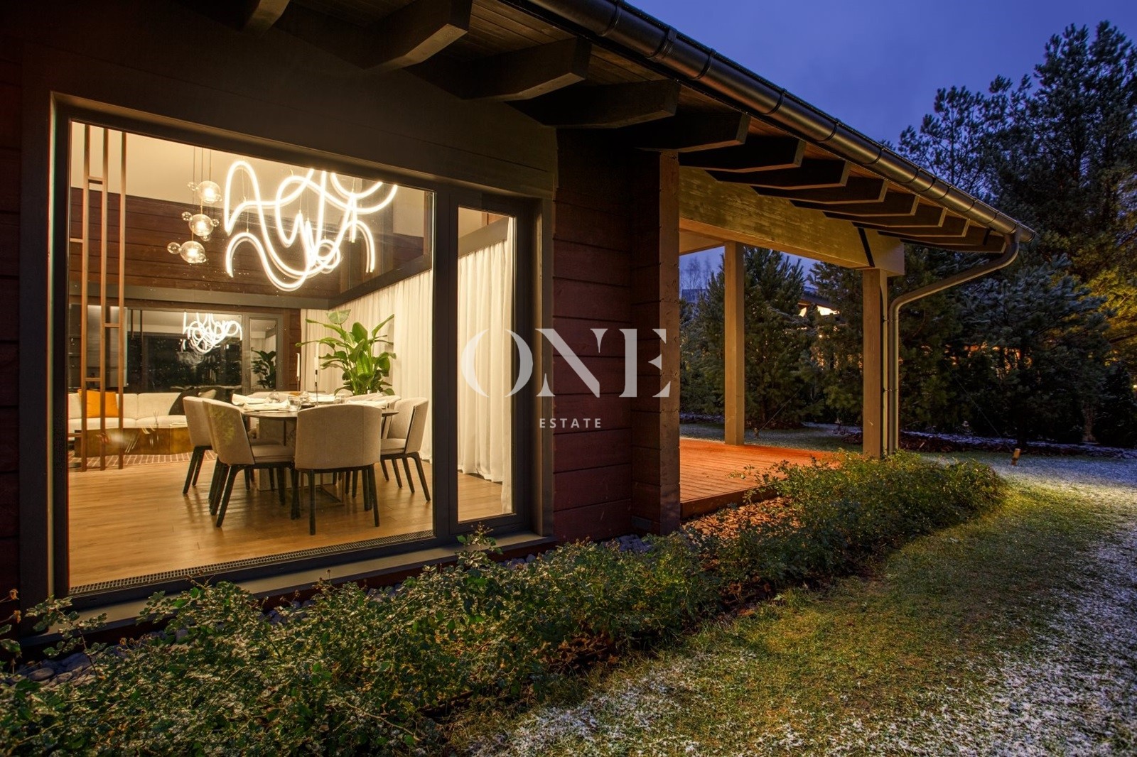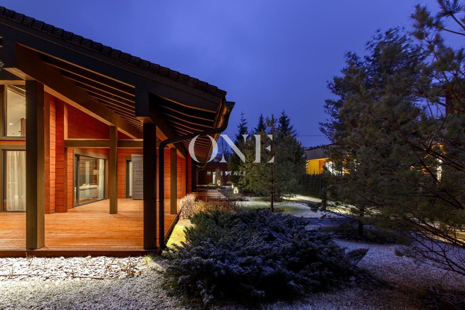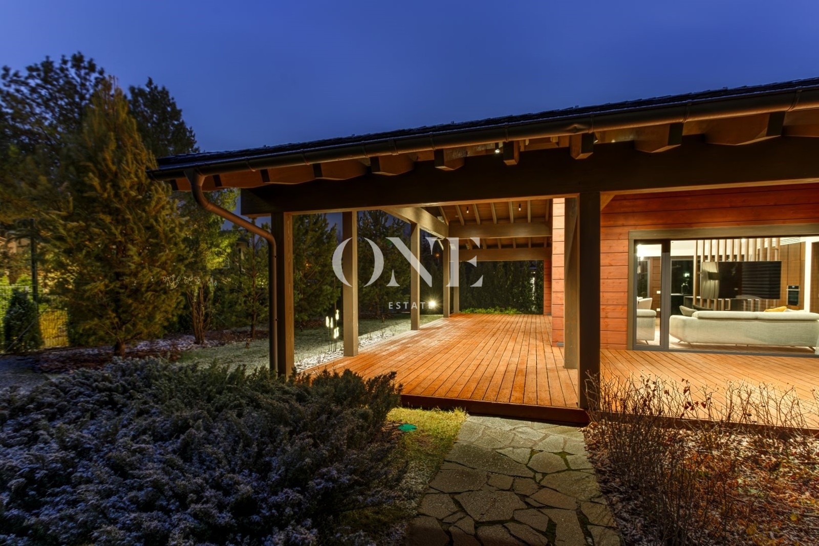Терраса просторная, в одной плоскости с ландшафтом. Оснащена летней кухней, подходит для круглогодичных встреч и отдыха.