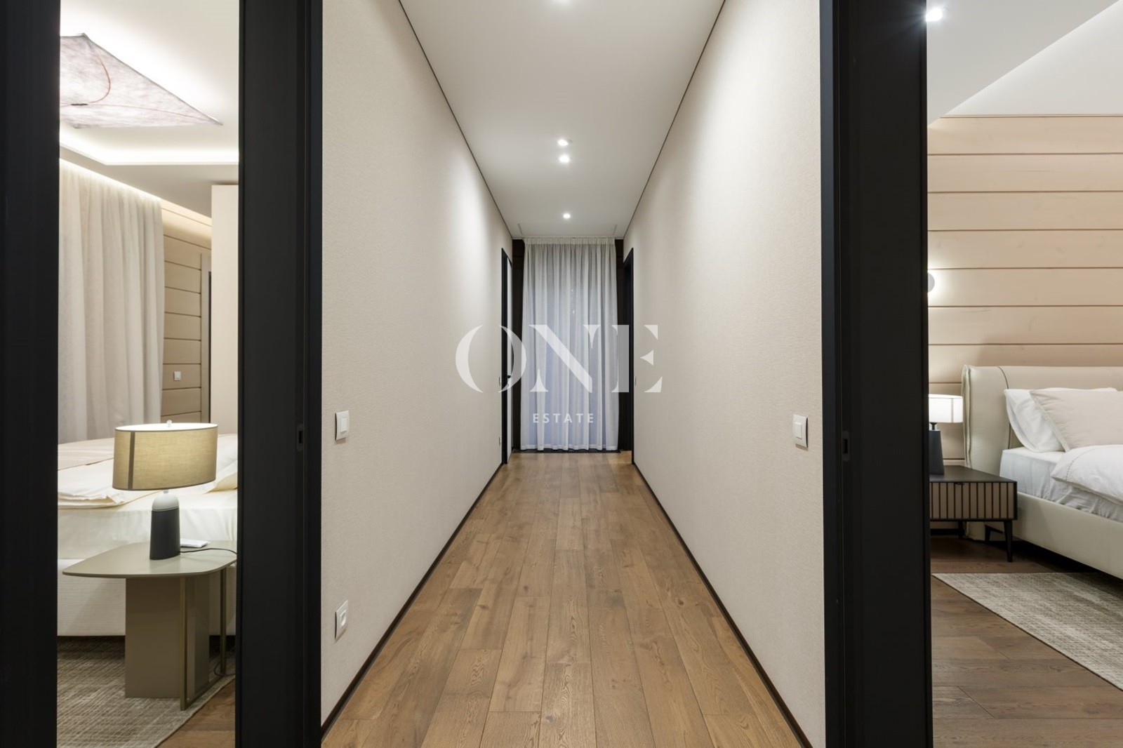 две спальни с индивидуальными ванными комнатами, лобби-зона, подходящая для кабинета, библиотеки или зимнего сада.