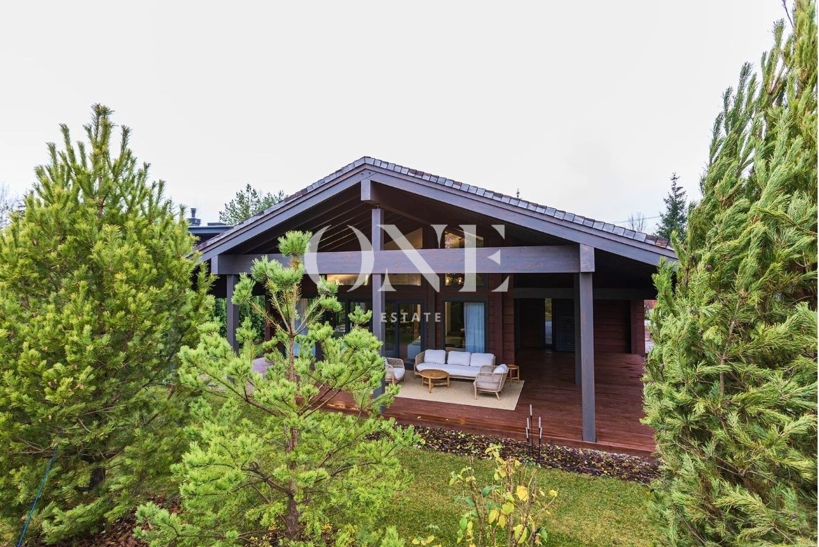 Премиальный дом в коттеджном поселке Gorki Lake площадью 455 кв. м. расположен на участке земли размером 12,64 сотки.