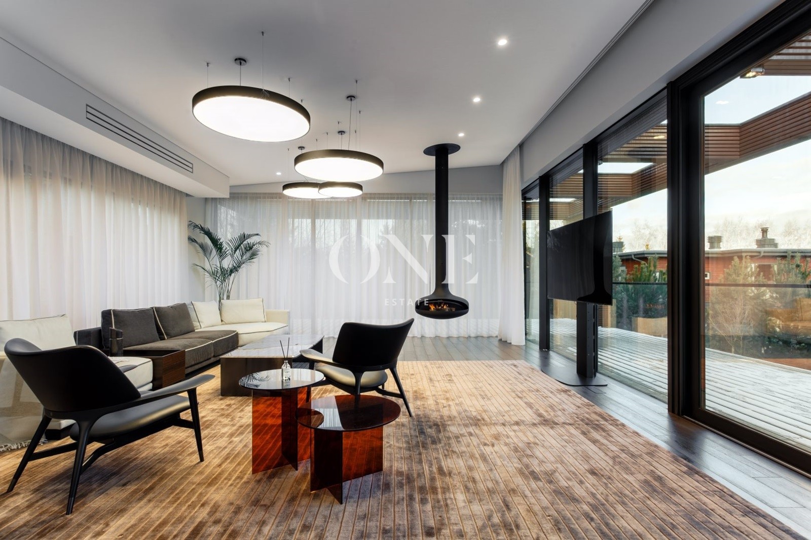 просторная гостиная с выходом на открытую террасу, кухня-столовая - с панорамными окнами,мастер-спальня, гардеробная и два с/у.