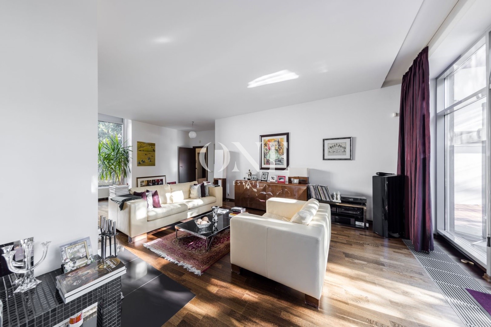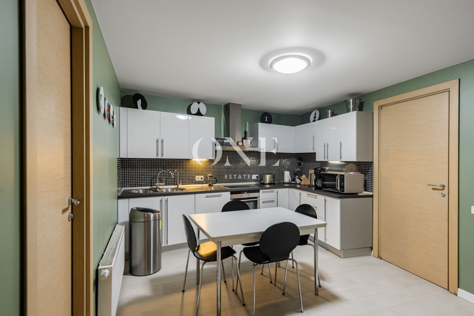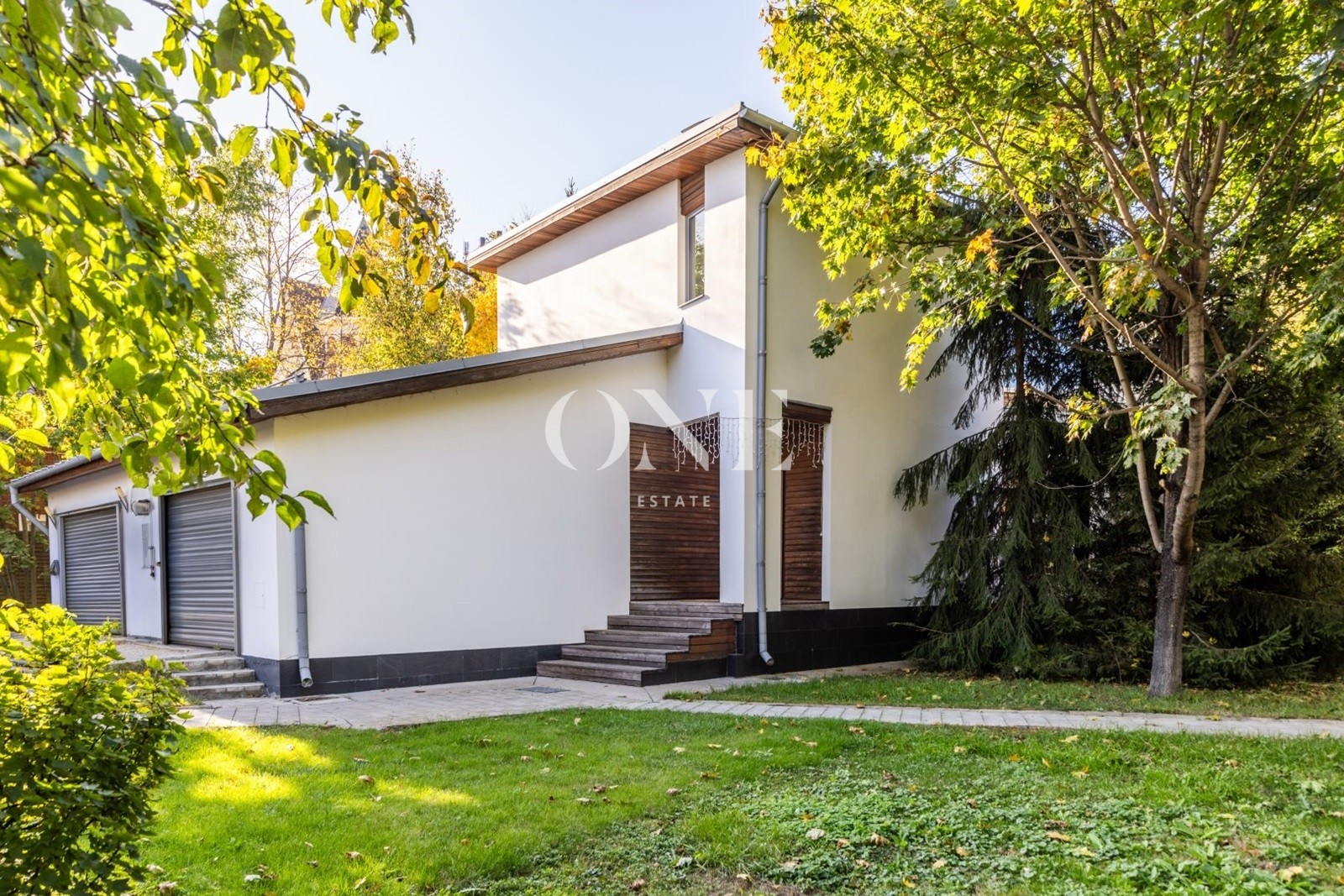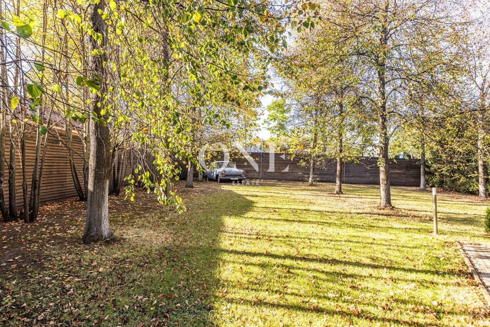 холл, гостиная с камином и выходом в сад, столовая, кабинет, санузел с душевой, сауна, бассейн с террасой для загара, гараж на 4 автомобиля