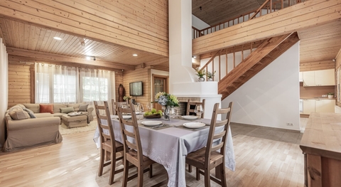 1 этаж: гостиная, кухня-столовая, спальня, с\у, сауна, постирочная; 2 этаж: мастер-блок с с\у и гардеробной, 3 спальни с с\у.