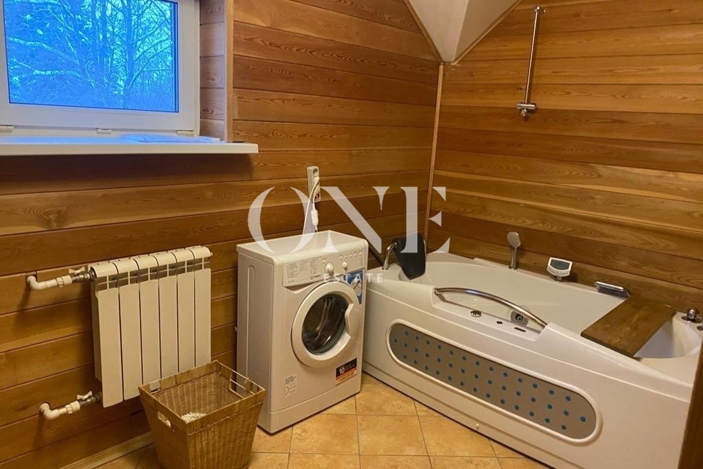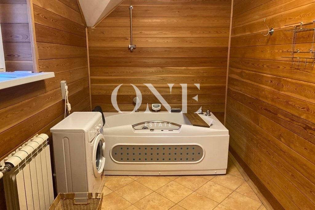 просторная кухня-столовая, гостиная с выходом на террасу и камином, кабинет, прихожая, санузел, постирочная, котельная, 2 спальни и с/у, гараж на 2 м/м;
