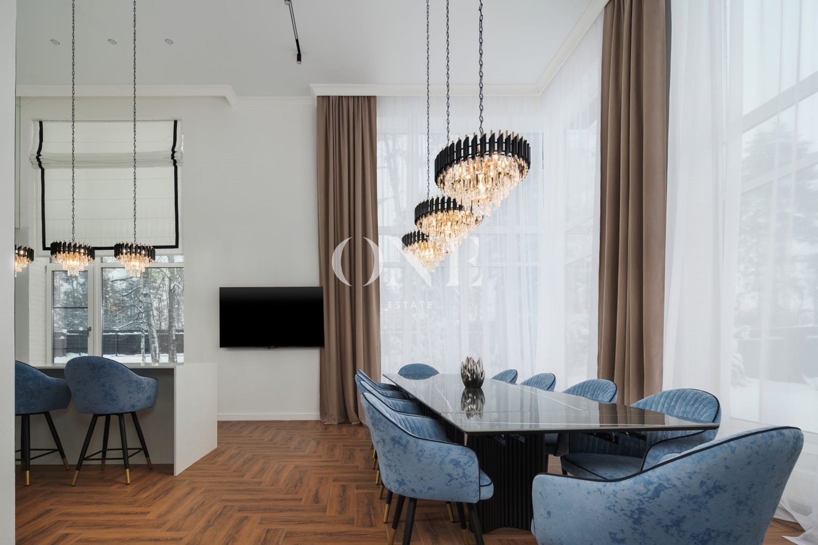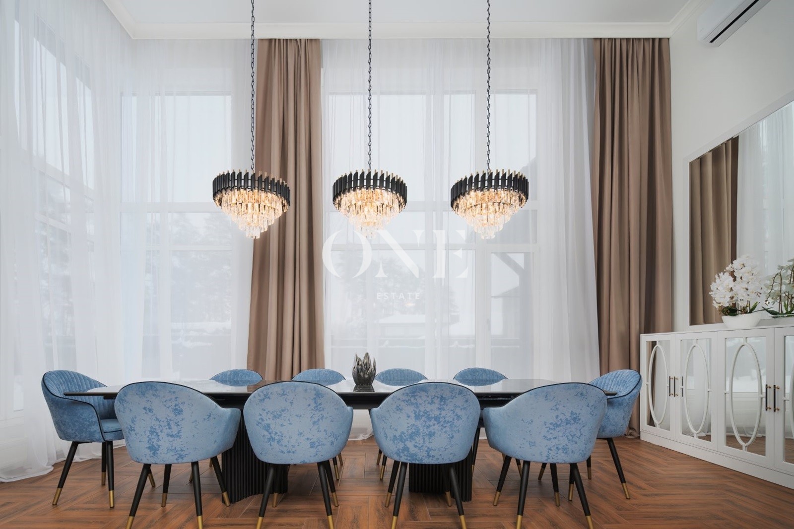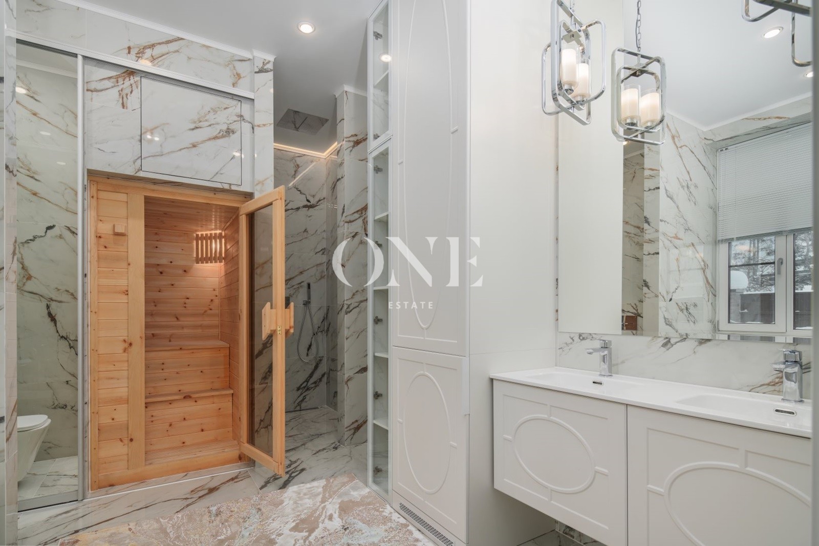 гостиная, кладовая,3 спальни с с/у, гардероб, кабинет, постирочная, прихожая, мастер спальня с с/у и гардеробной, котельная, гостевой с/у, сауна, кухня, столовая, коридор.