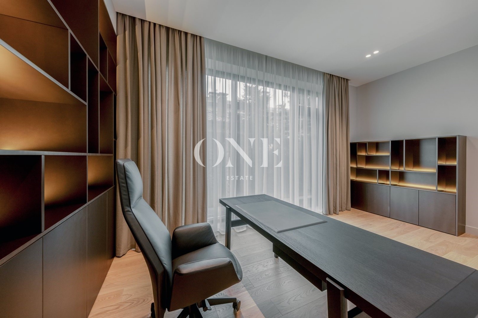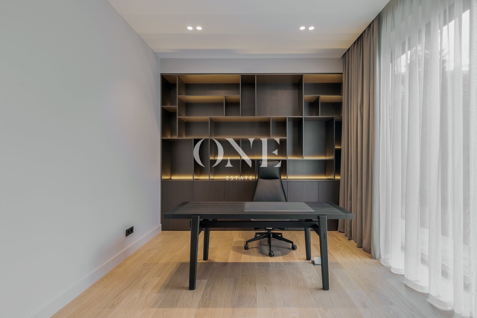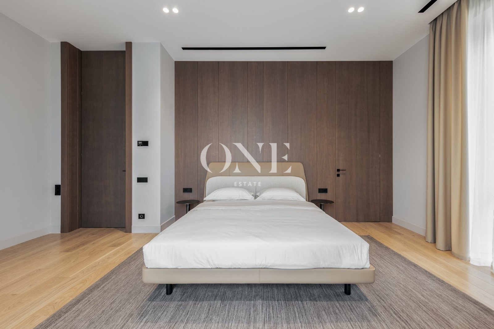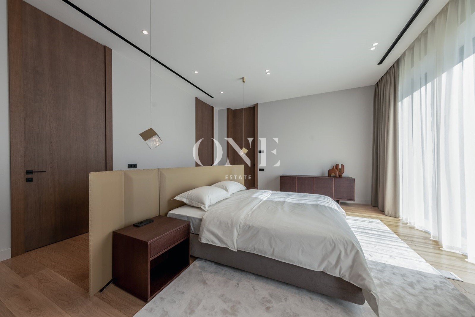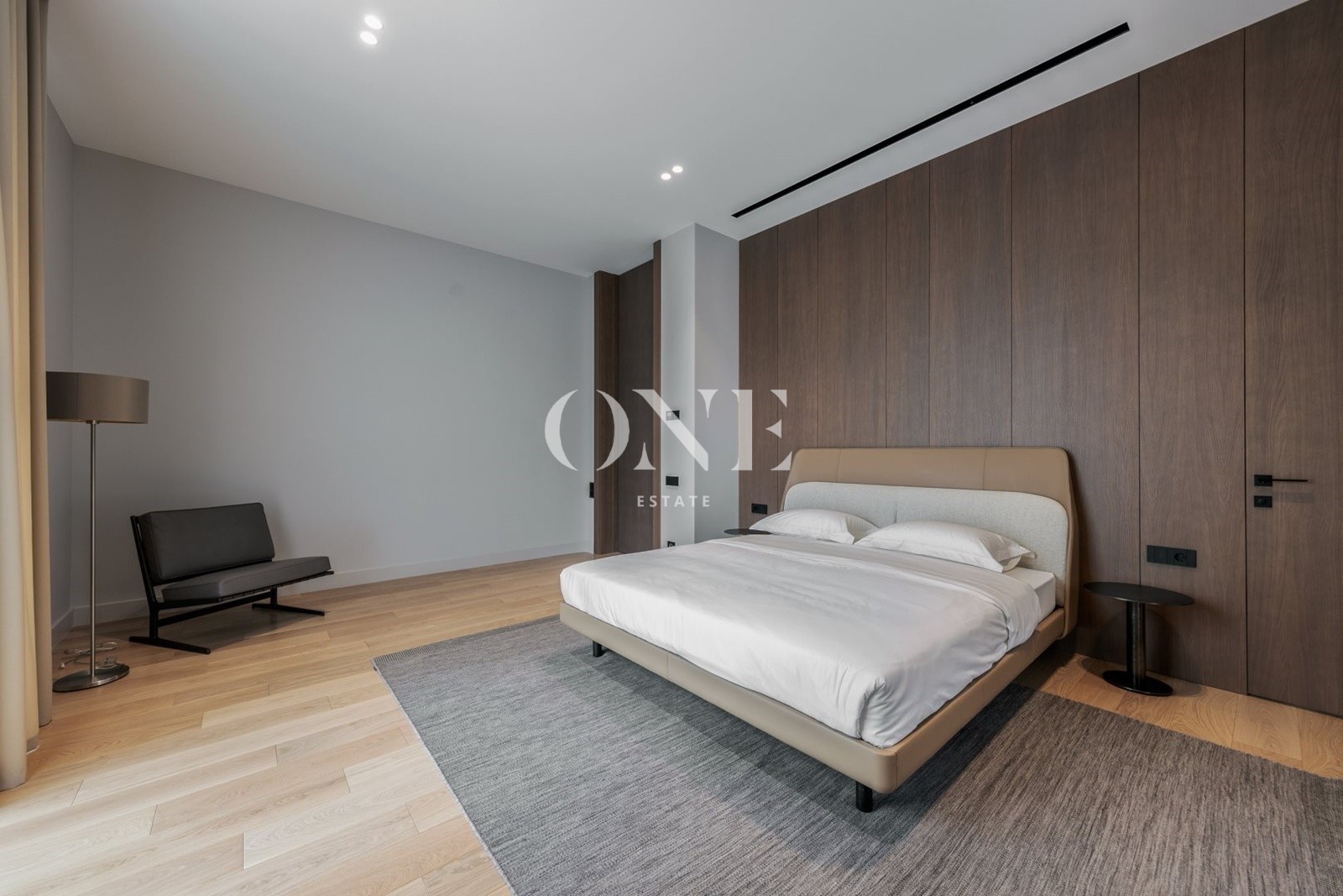 мастер-сьют с просторной ванной и гардеробной, две спальни с индивидуальными санузлами, кабинет, постирочная.