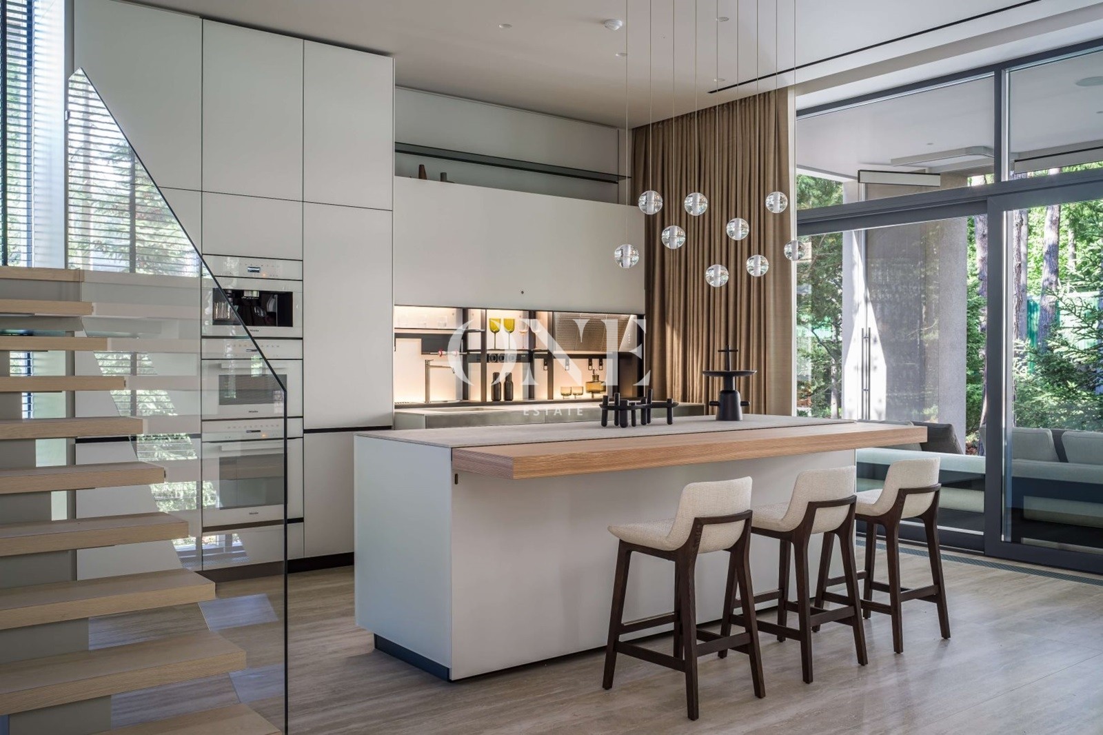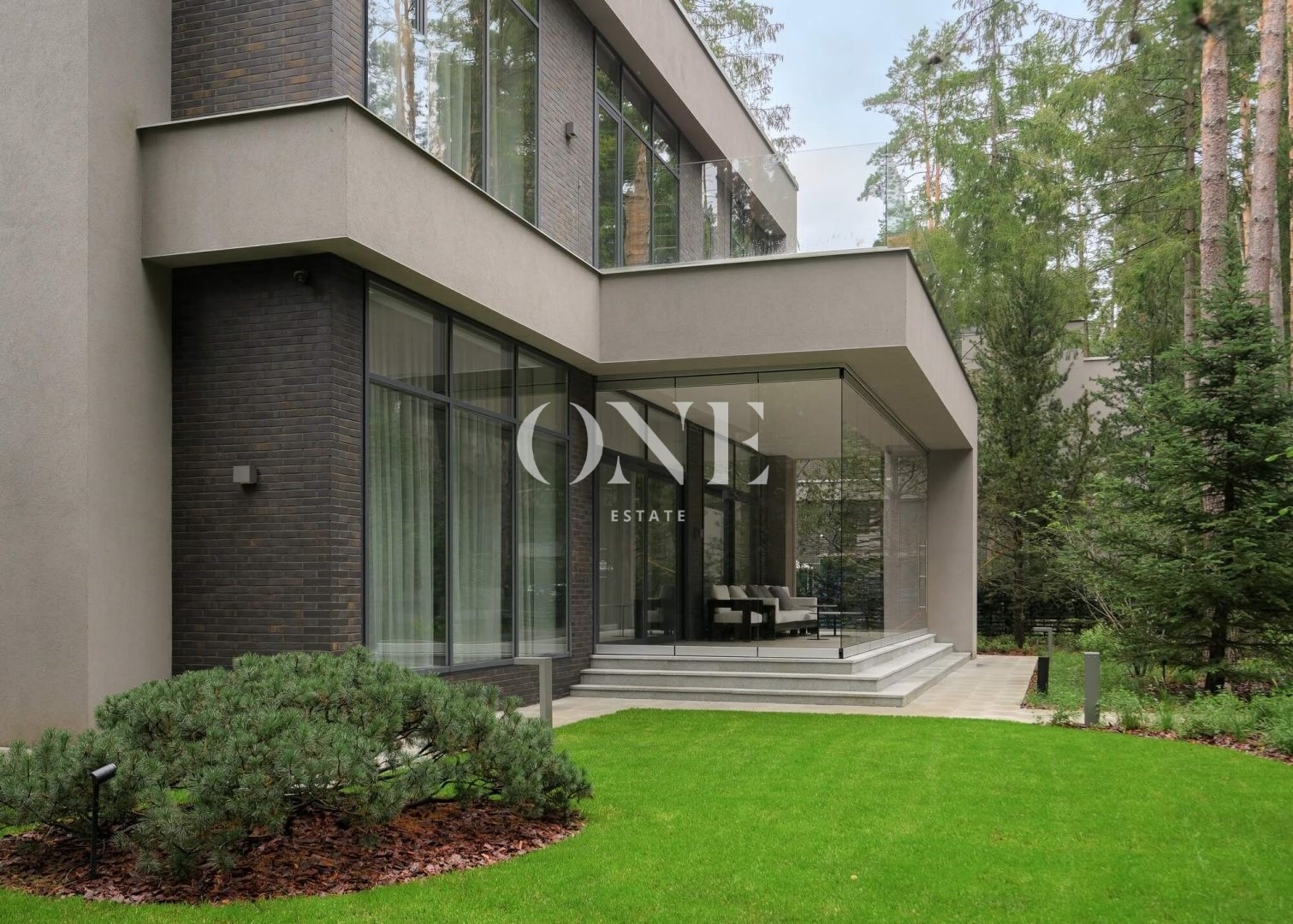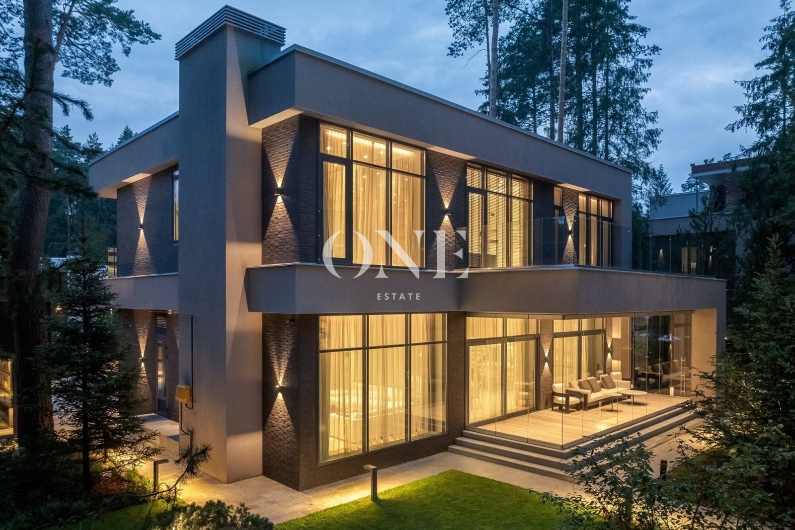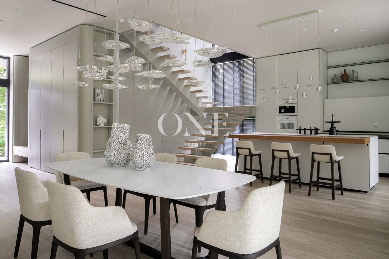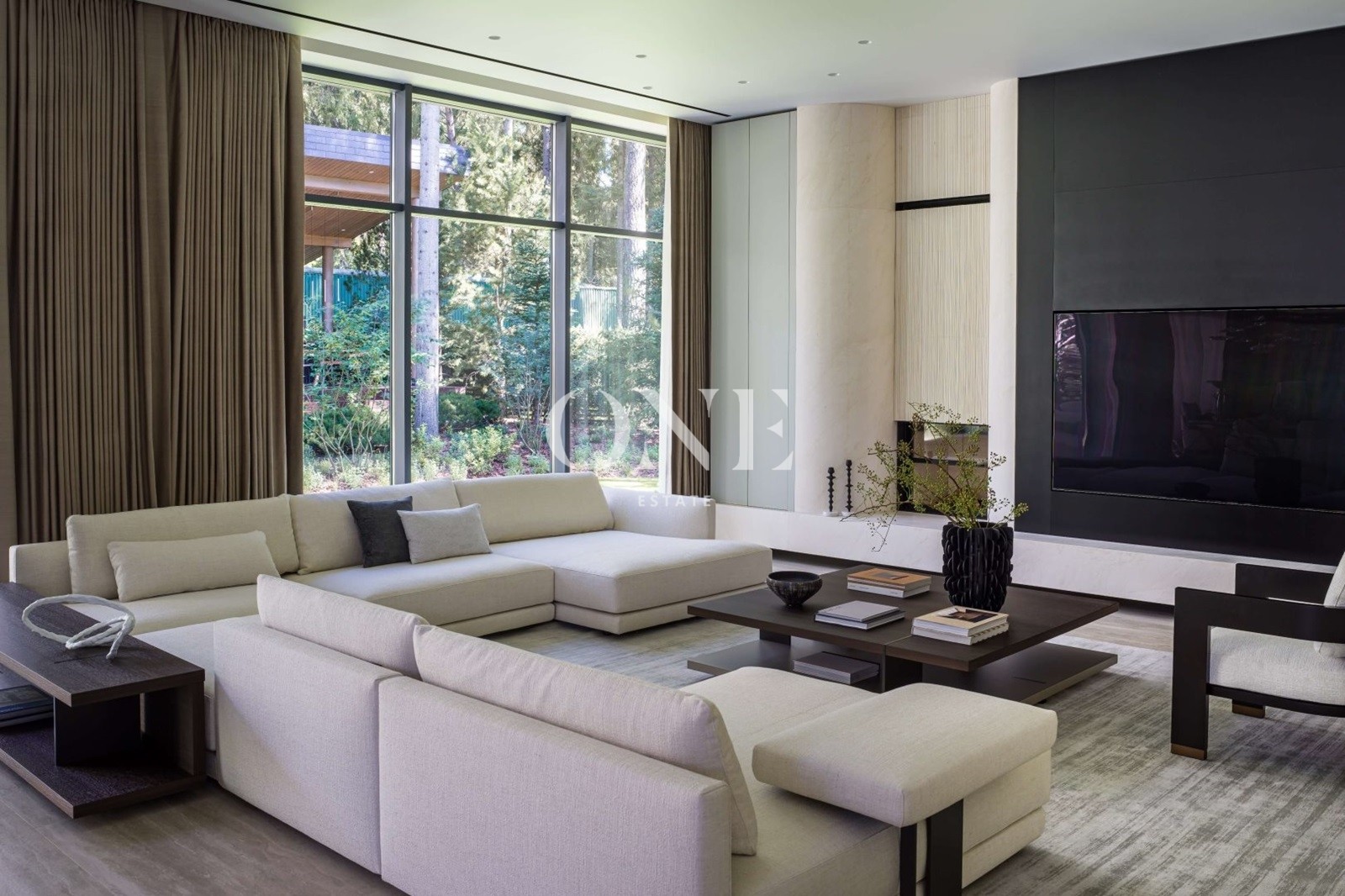 Современный дом общей площадью 645 кв. м на лесном участке 18 соток расположен в 28 км от МКАД по Рублево-Успенскому шоссе и в 25 км по Новорижскому шоссе в КП «Маслово Парк».