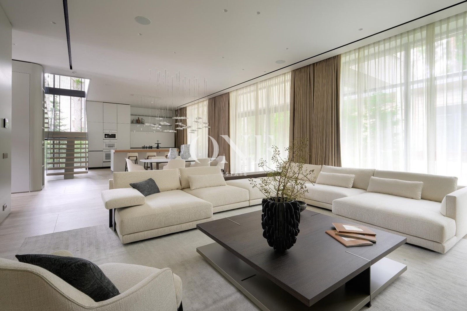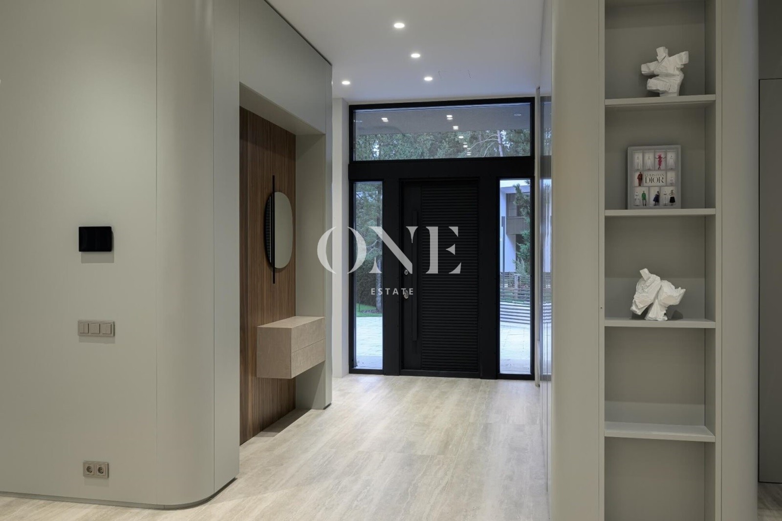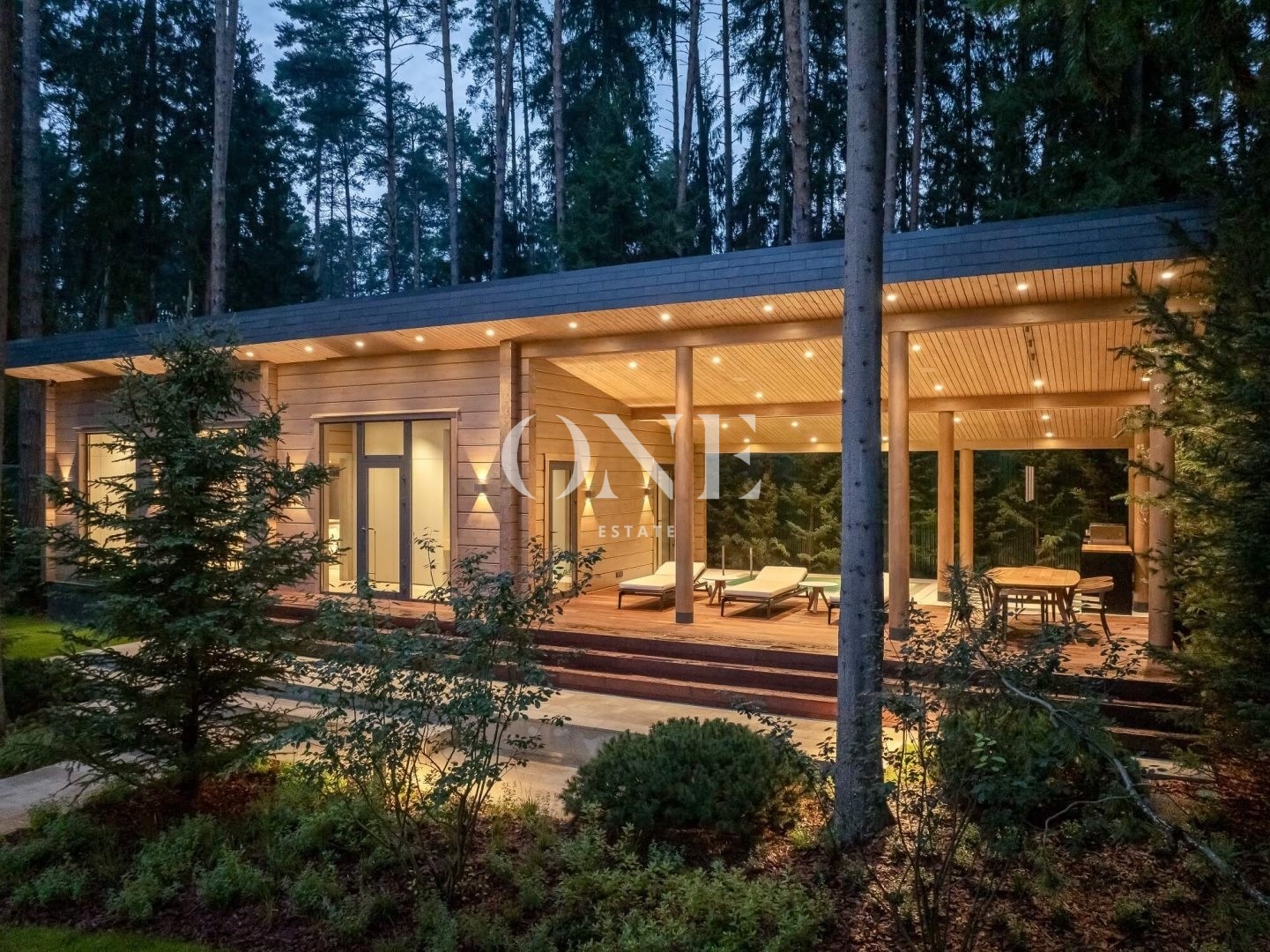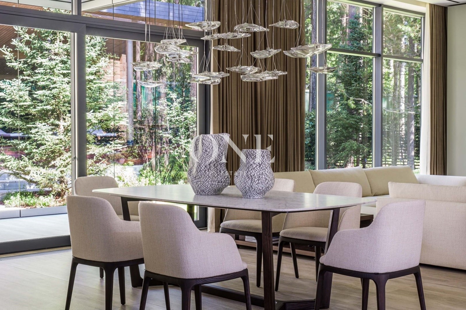 Современный дом общей площадью 645 кв. м на лесном участке 18 соток расположен в 28 км от МКАД по Рублево-Успенскому шоссе и в 25 км по Новорижскому шоссе в КП «Маслово Парк».