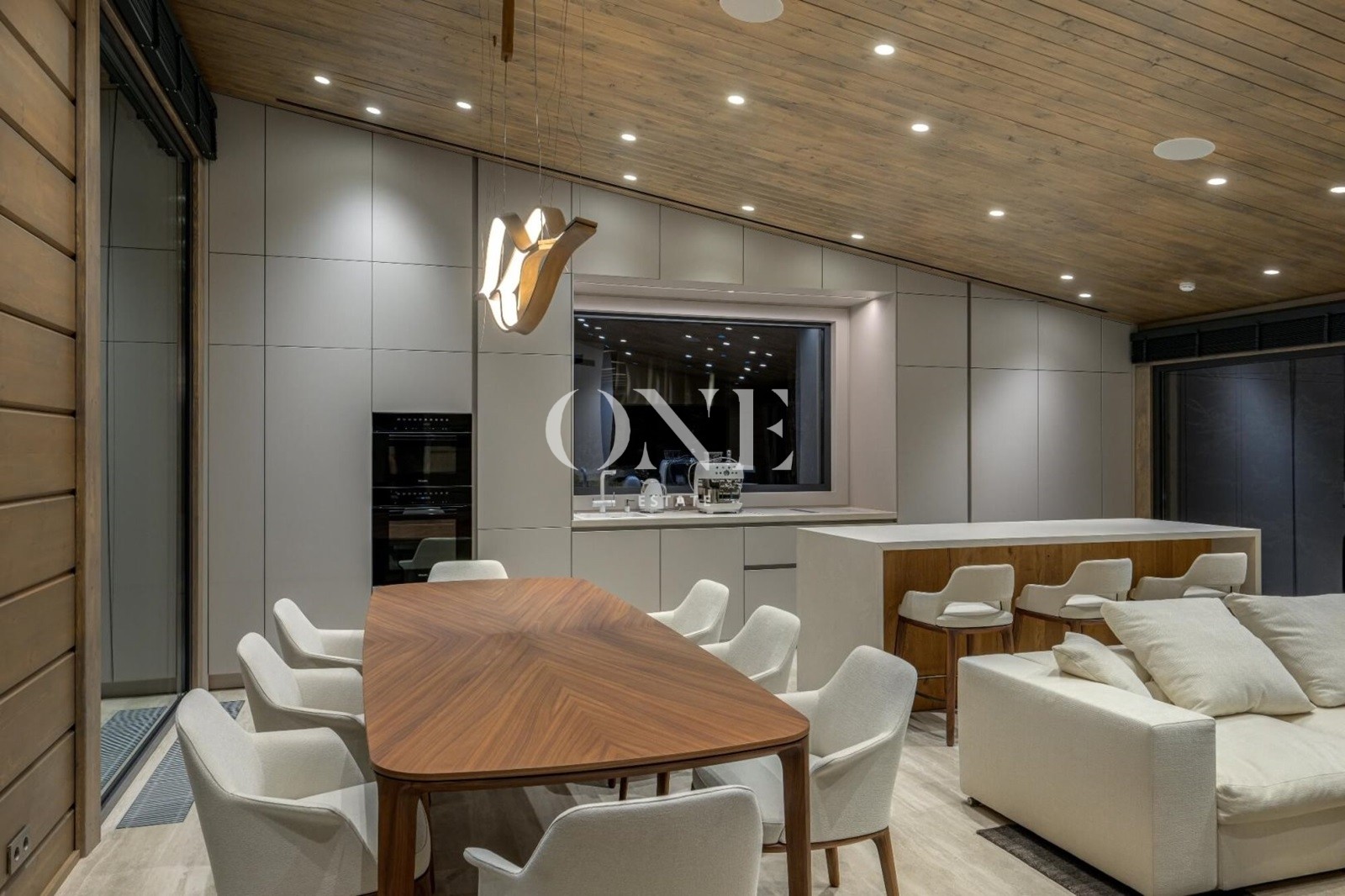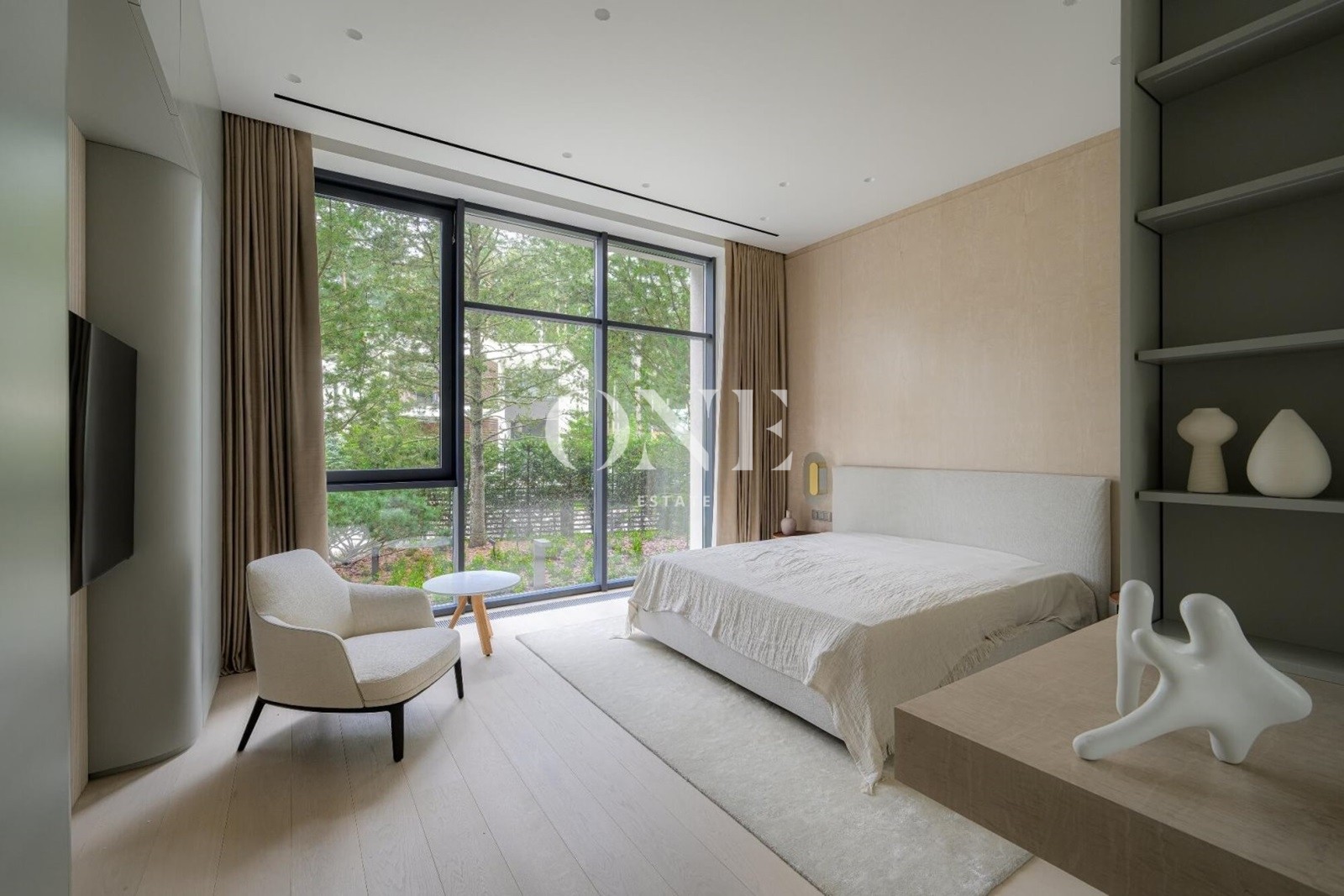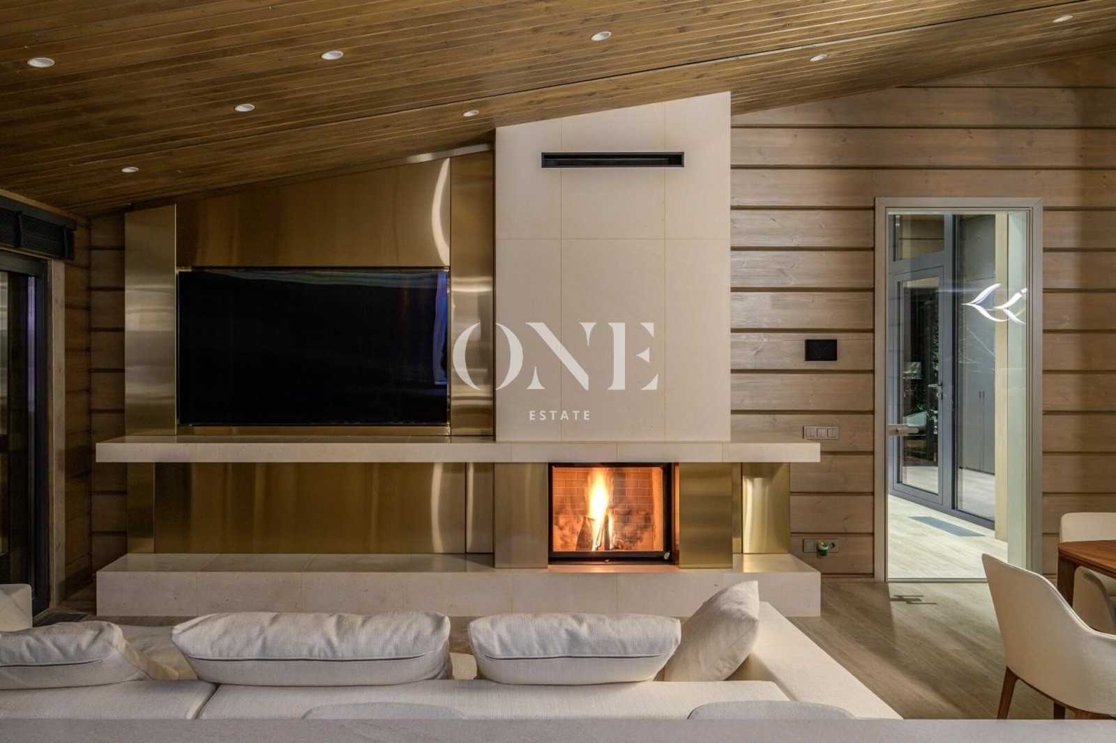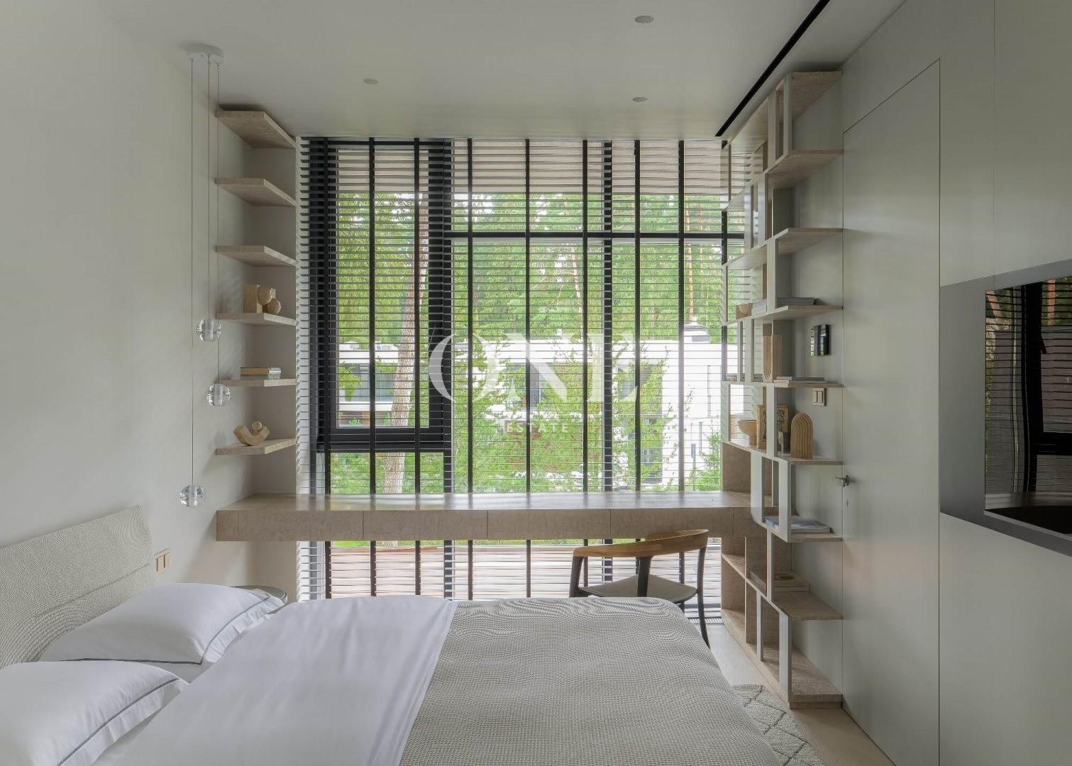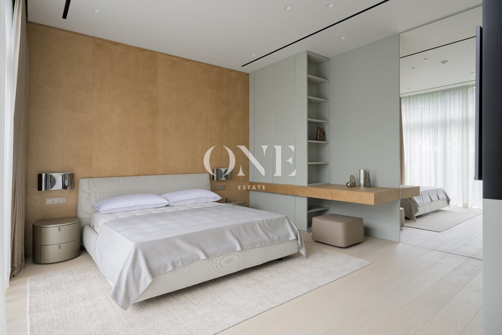 Современный дом общей площадью 645 кв. м на лесном участке 18 соток расположен в 28 км от МКАД по Рублево-Успенскому шоссе и в 25 км по Новорижскому шоссе в КП «Маслово Парк».