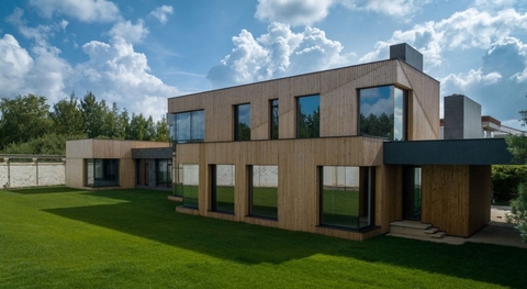 Современный дом общей площадью 380 кв. м на лесном участке 18 соток расположен в 28 км от МКАД по Рублево-Успенскому шоссе и в 25 км по Новорижскому шоссе в КП «Маслово Парк».