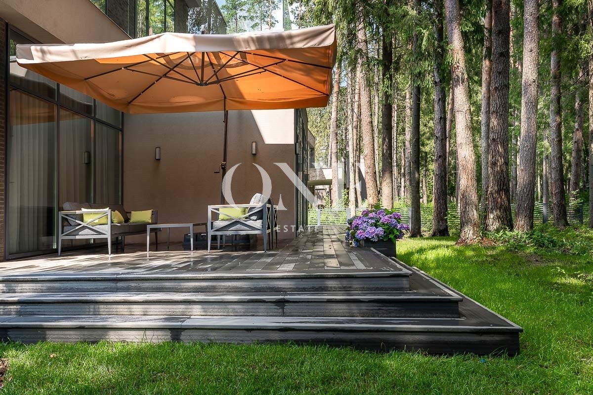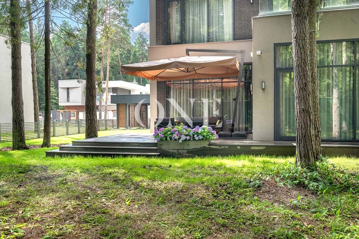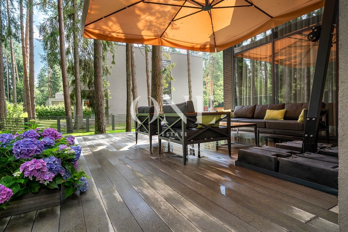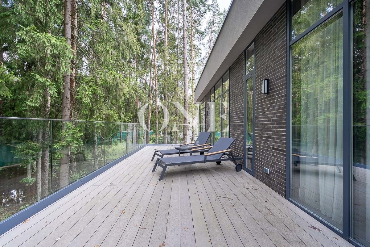 Современный дом общей площадью 380 кв. м на лесном участке 18 соток расположен в 28 км от МКАД по Рублево-Успенскому шоссе и в 25 км по Новорижскому шоссе в КП «Маслово Парк».