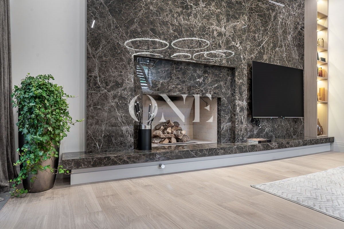гостиная с камином, 1 гостевая спальня, профессионально оборудованная кухня-столовая с баром, выходами на террасы для отдыха и зону барбекю.