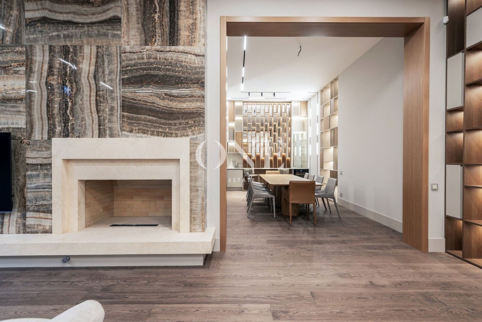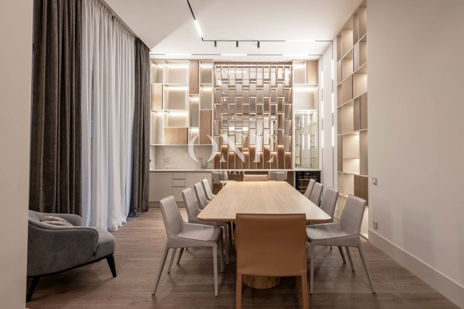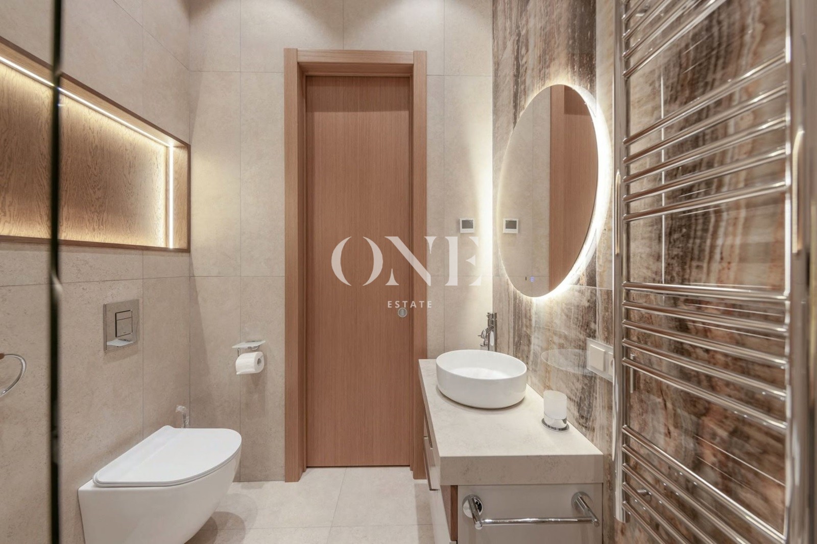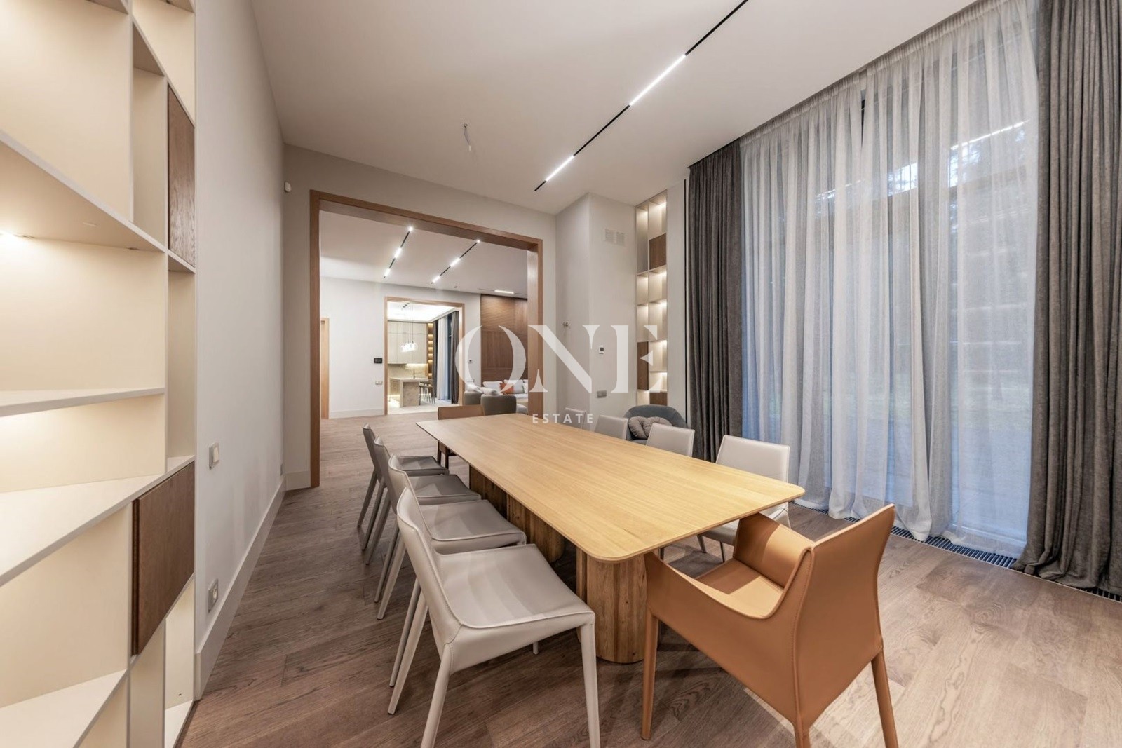 входной холл, просторная гостиная с большим открытым камином, спальня, профессионально укомплектованная кухня, столовая с барной стойкой и выходом на просторную террасу с лаунж- зоной, санузел, постирочная, котельная, спальня-кабинет, кухня с выходом на малую террасу и зону барбекю.