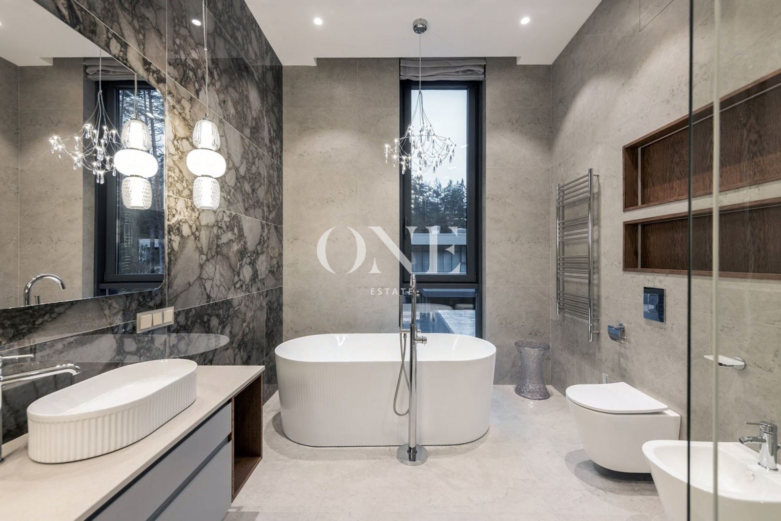 Двухэтажный дом 400 м2 на участке 22,77 сотки в лесном поселке Маслово Парк в 25 км от МКАД по Рублево-Успенскому шоссе. В доме завершен ремонт с отделкой высококачественными материалами. Дом оснащён продуманной системой климатконтроля с хронотермостатами Valtec, позволяющими управлять отоплением через Wi-Fi.