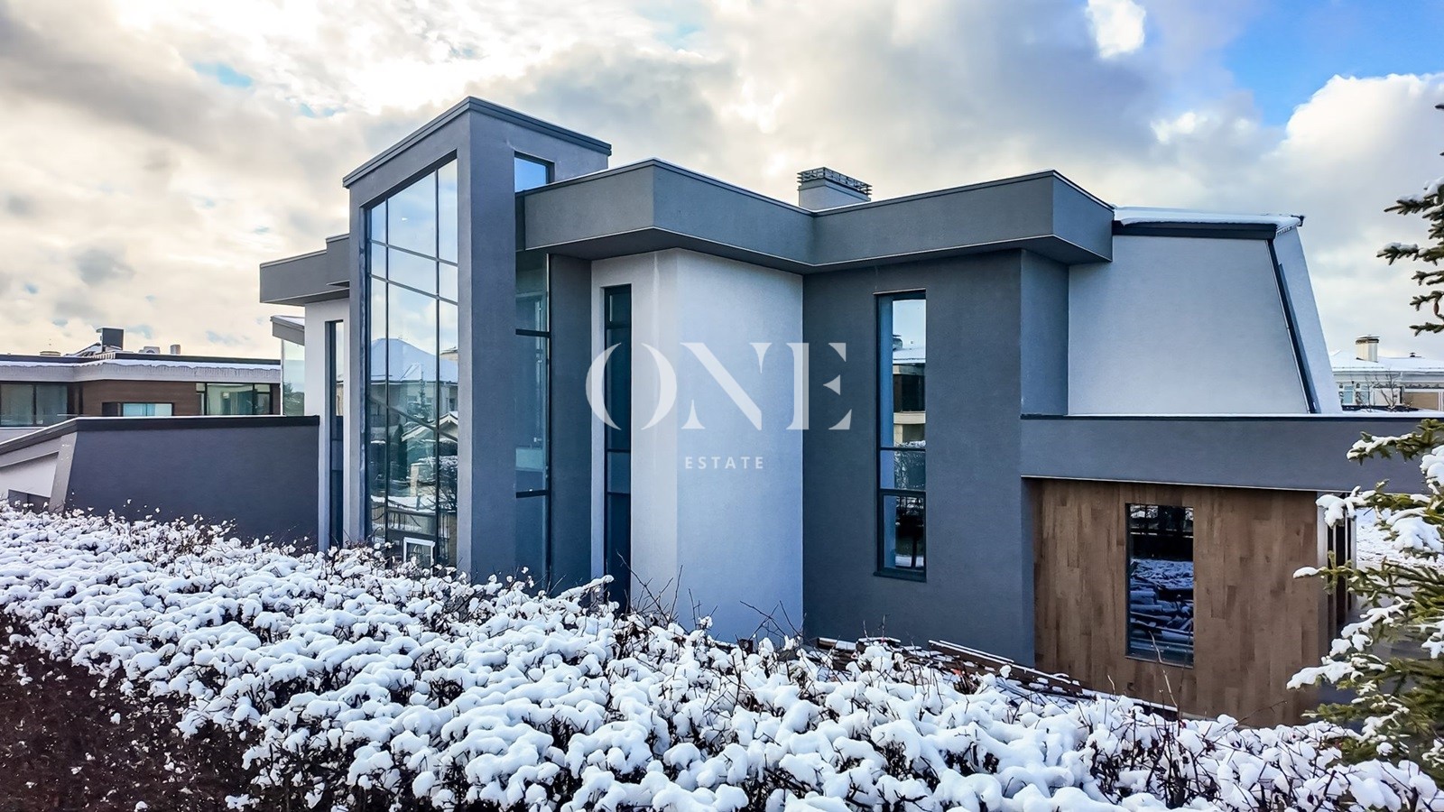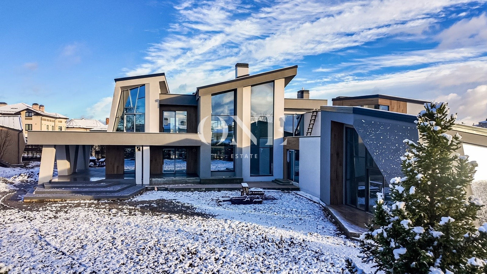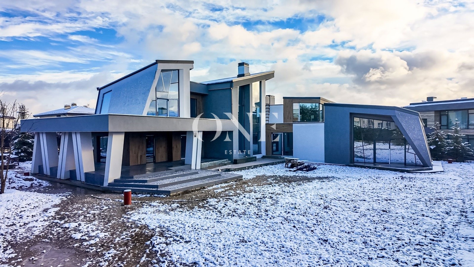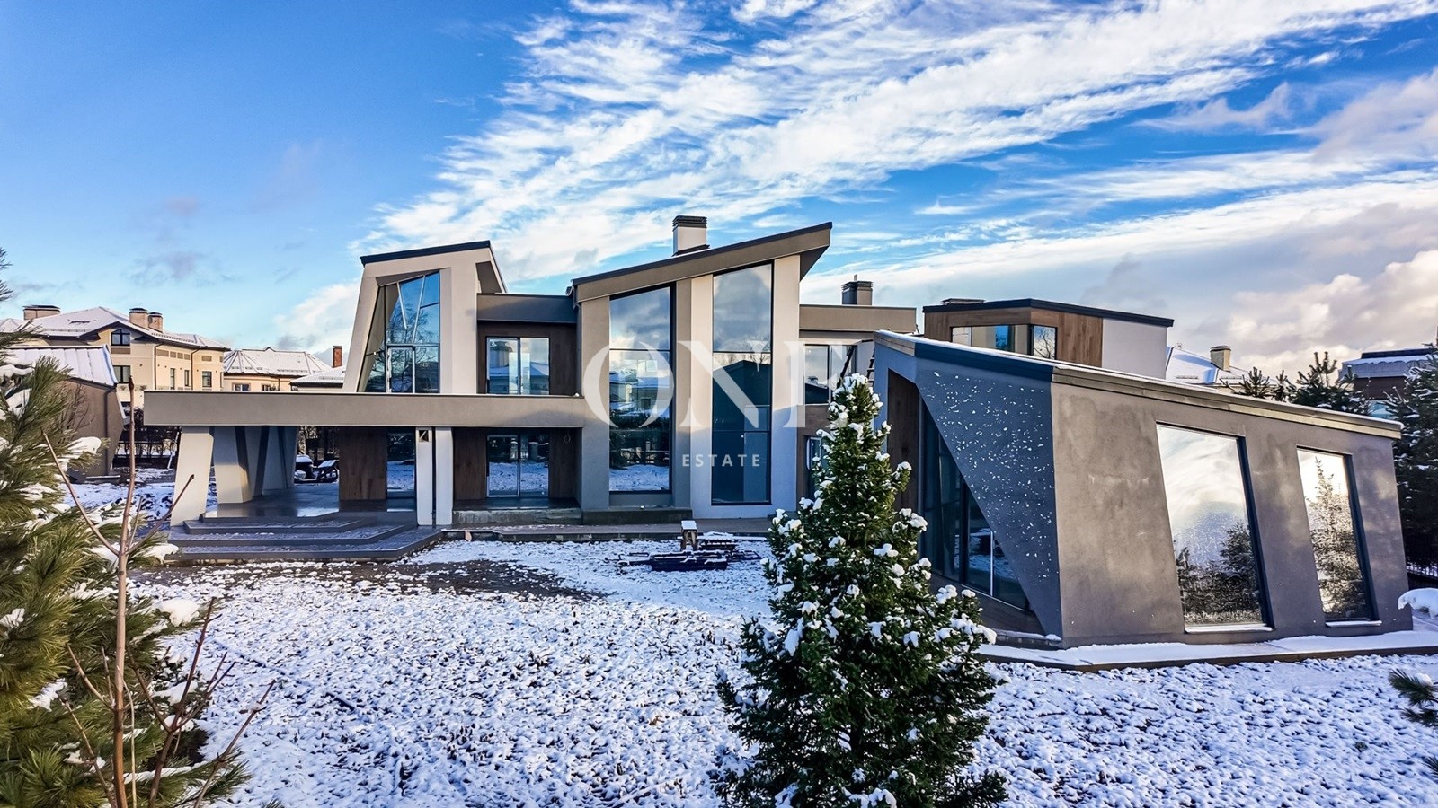 Резиденция строится по уникальному авторскому проекту в стиле хай-тек. Представляет собой образец технологичности и функциональности. Подчеркнутая строгость и угловатость ассиметричных форм, стальные и белые оттенки фасадов, увеличенная площадь остекления - минимум деталей и декора, максимум солидности и фундаментальности. В монолитную сдержанную конструкцию вкраплены элементы из светлого и темного дерева - они оживляют композицию и придают ей более динамичный характер.