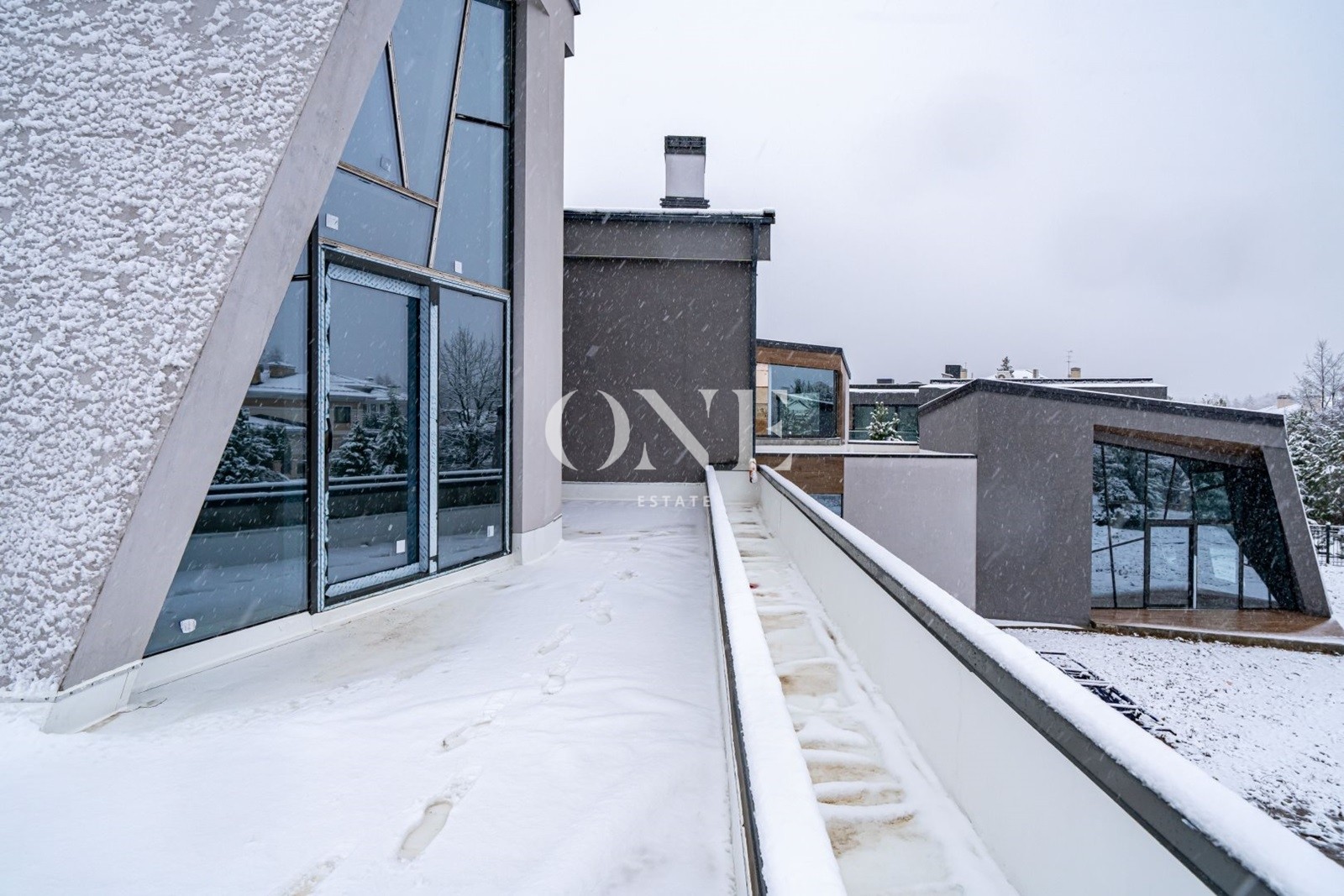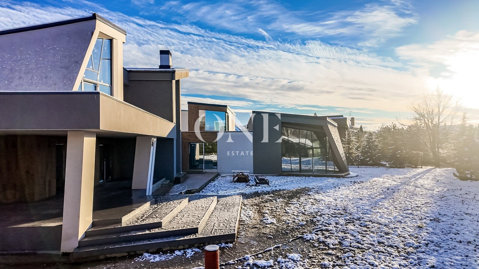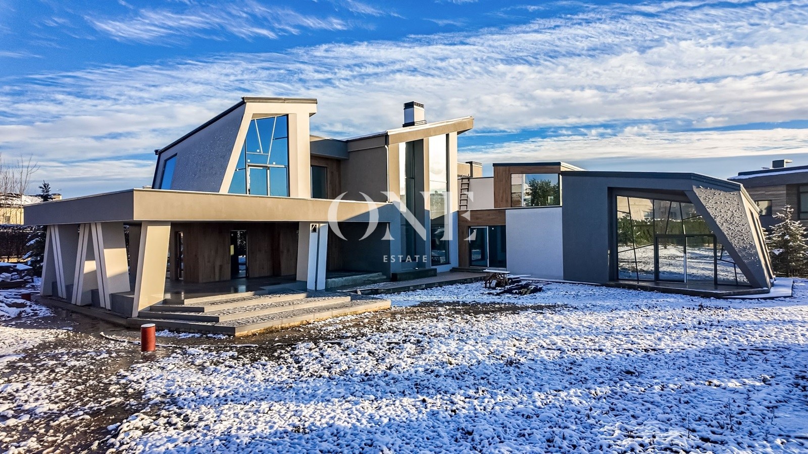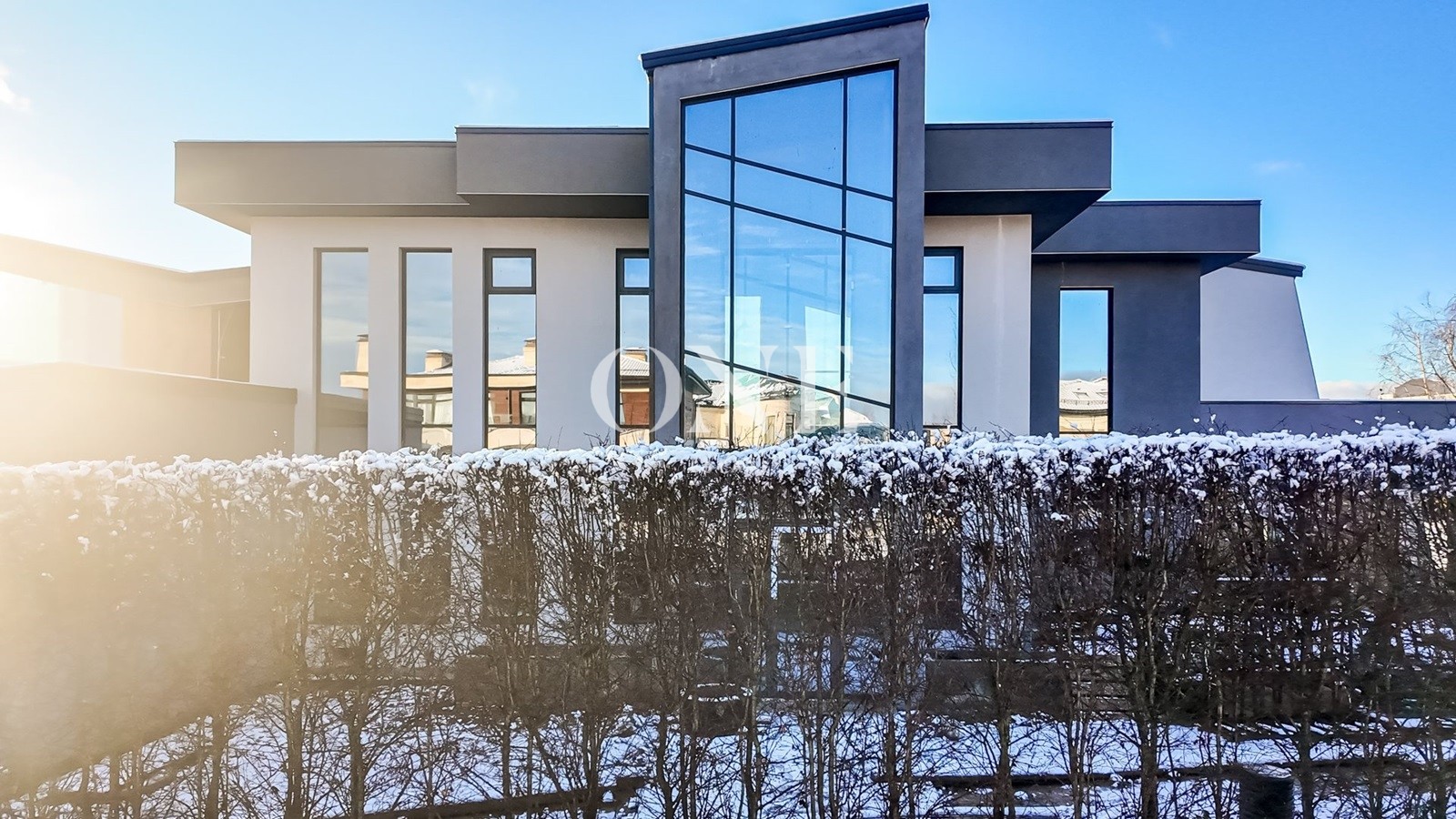 Резиденция строится по уникальному авторскому проекту в стиле хай-тек. Представляет собой образец технологичности и функциональности. Подчеркнутая строгость и угловатость ассиметричных форм, стальные и белые оттенки фасадов, увеличенная площадь остекления - минимум деталей и декора, максимум солидности и фундаментальности. В монолитную сдержанную конструкцию вкраплены элементы из светлого и темного дерева - они оживляют композицию и придают ей более динамичный характер.