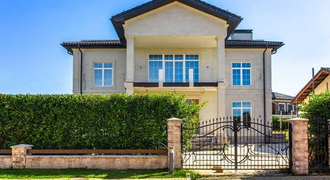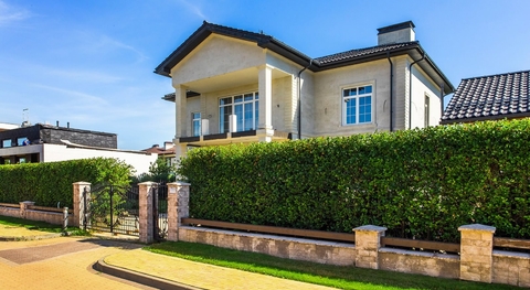 Все коммуникации центральные — магистральный газ, электричество 20 кВт, водоснабжение и канализация — заведены на участок. На участке будет просто создать просторный внутренний двор и гармоничный ландшафтный дизайн, так как он имеет ровную поверхность и прямоугольную форму. Живая изгородь и кованый забор в английском стиле украшают фасадную сторону участка.