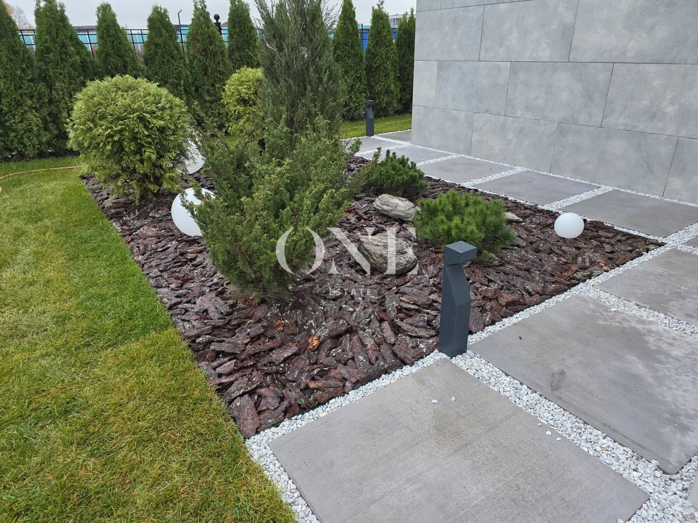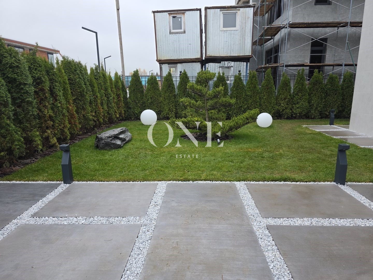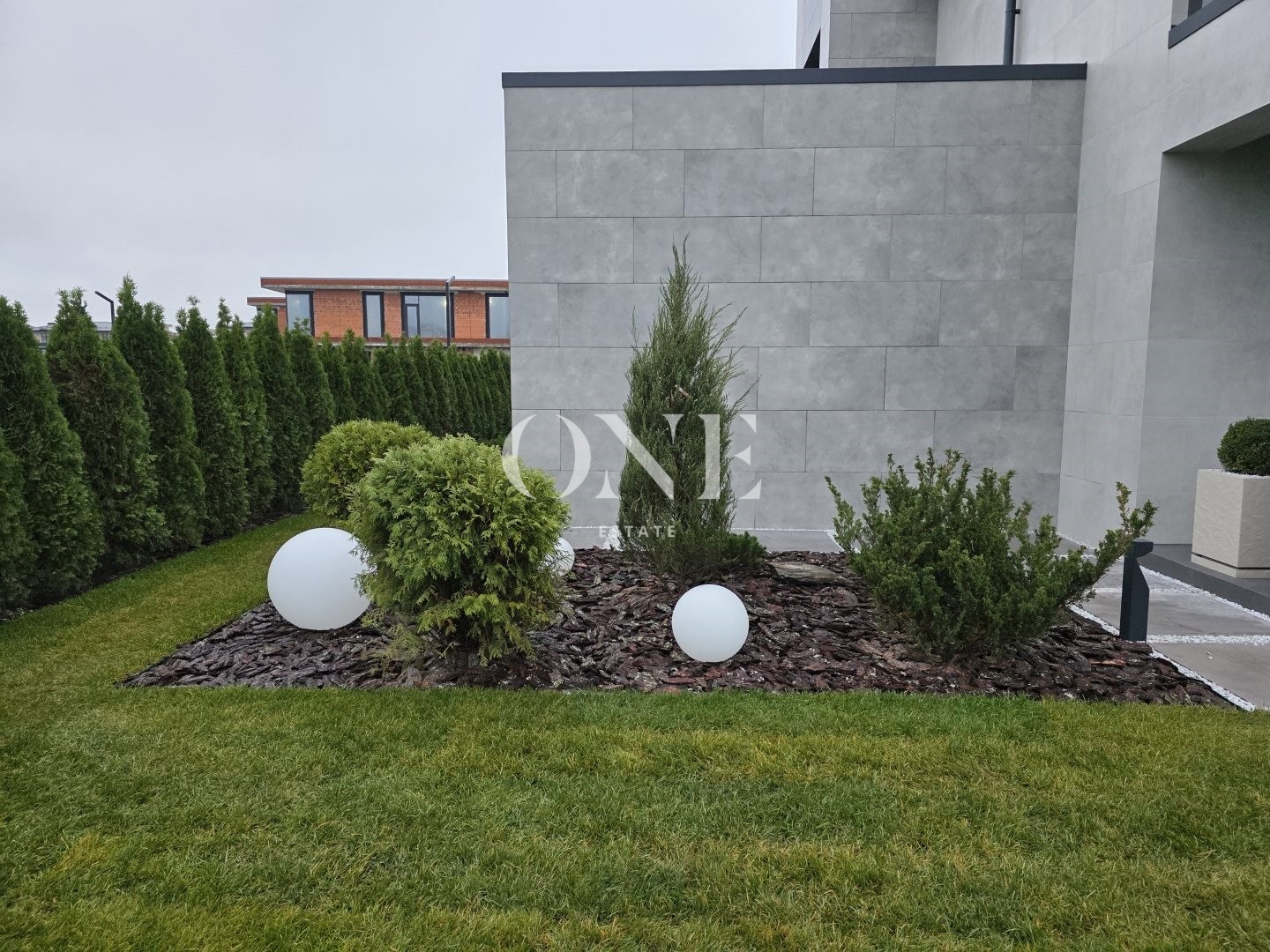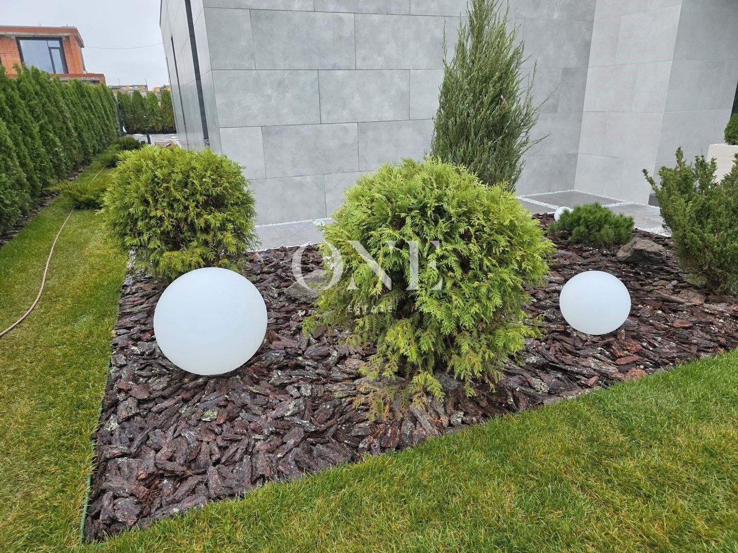Все коммуникации центральные — магистральный газ, электричество 20 кВт, водоснабжение и канализация — заведены на участок. На участке будет просто создать просторный внутренний двор и гармоничный ландшафтный дизайн, так как он имеет ровную поверхность и прямоугольную форму. Живая изгородь и кованый забор в английском стиле украшают фасадную сторону участка.
