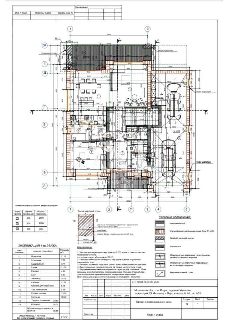 холл, гостиная, кухня, столовая, с/у, кабинет, комната для персонала, котельная, гараж на 2 м/м,