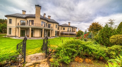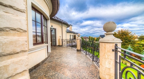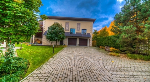 Предлагается дом с отделкой и мебелью в классическом стиле площадью 650 кв.м на участке 30 соток с ландшафтным дизайном в КП Монолит, расположенный на тихой зеленой улице.