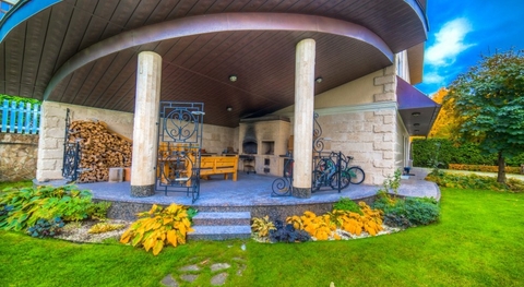 Очень зеленый участок с многолетним сформированным ландшафтным дизайном. Приватный и тихий. Уличное освещение.