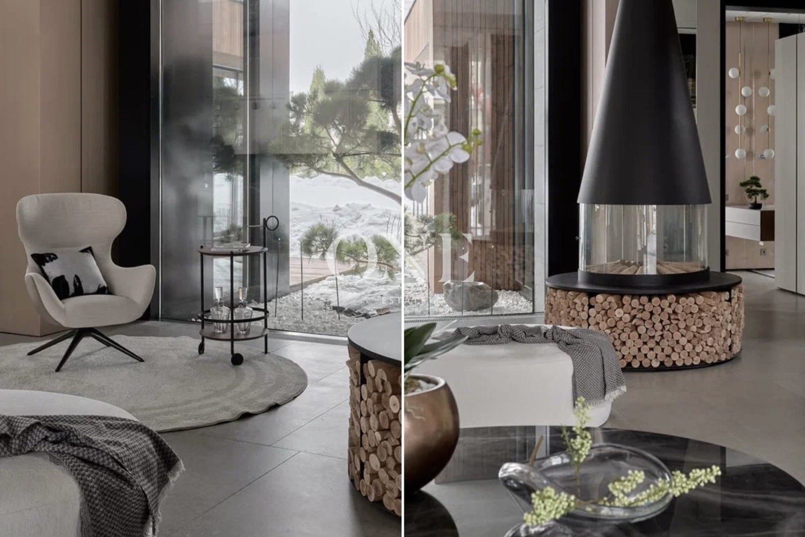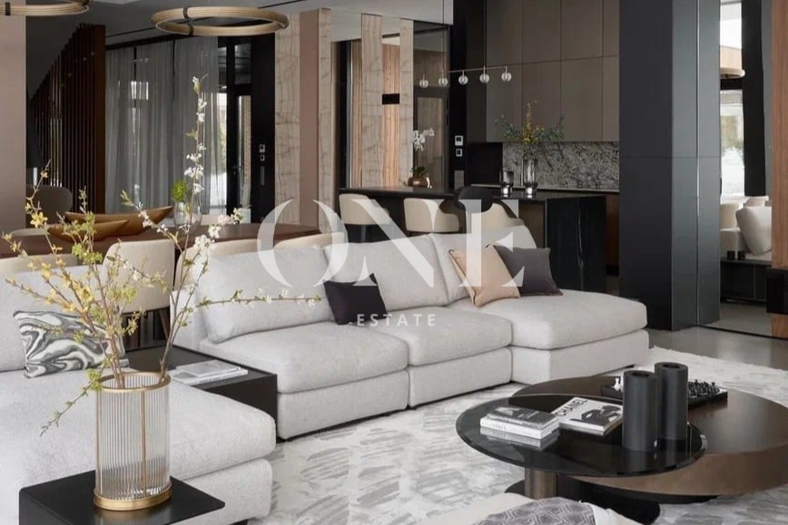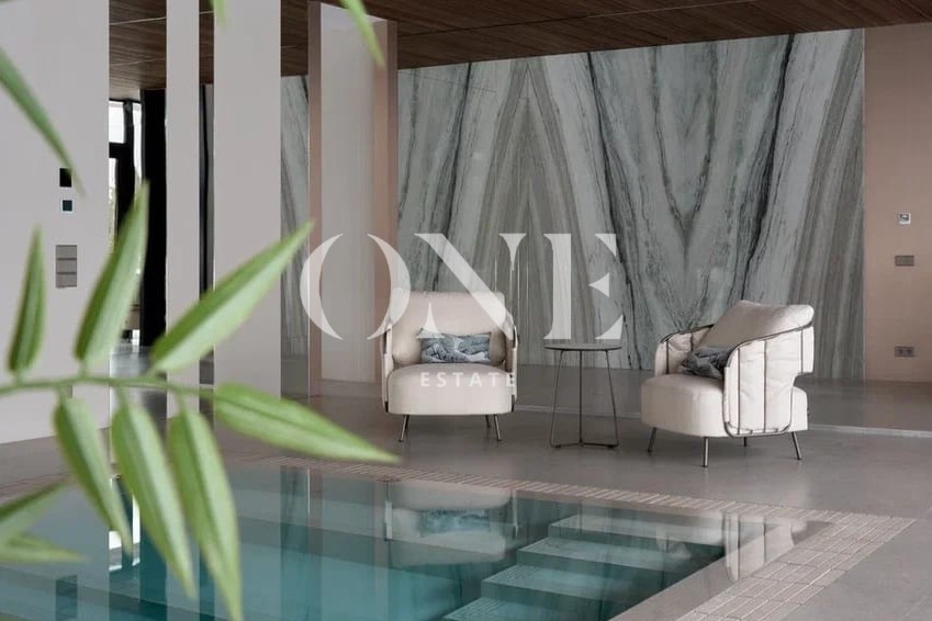 гостиная с камином, кухня с островом и отдельной тех.кухней, столовая, кабинет, гардеробная, гараж на 2 авто, блок для персонала. SPA-зона: бассейн с джакузи, хаммам, сауна, зона отдыха.