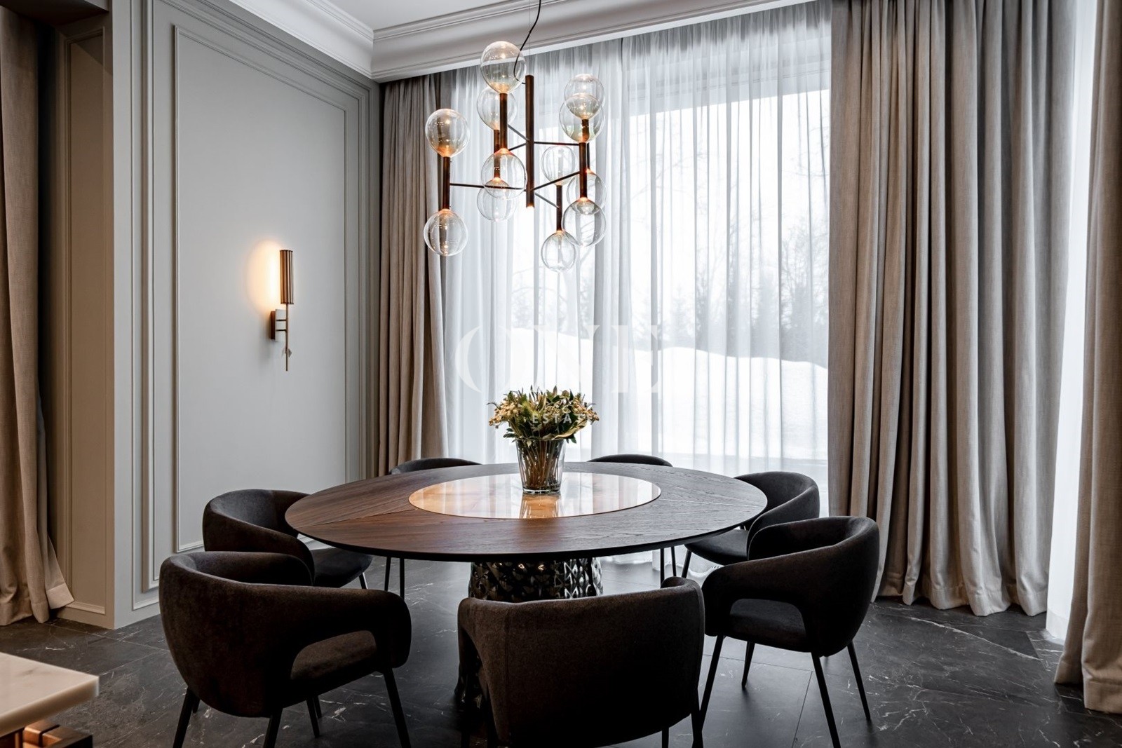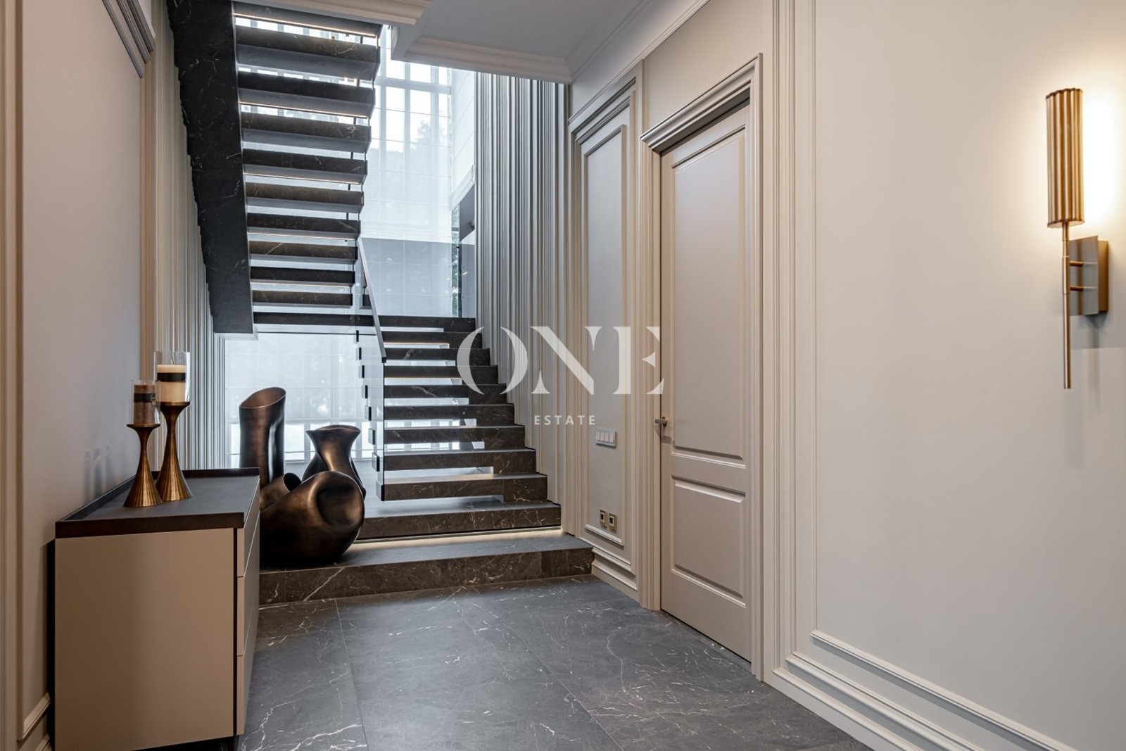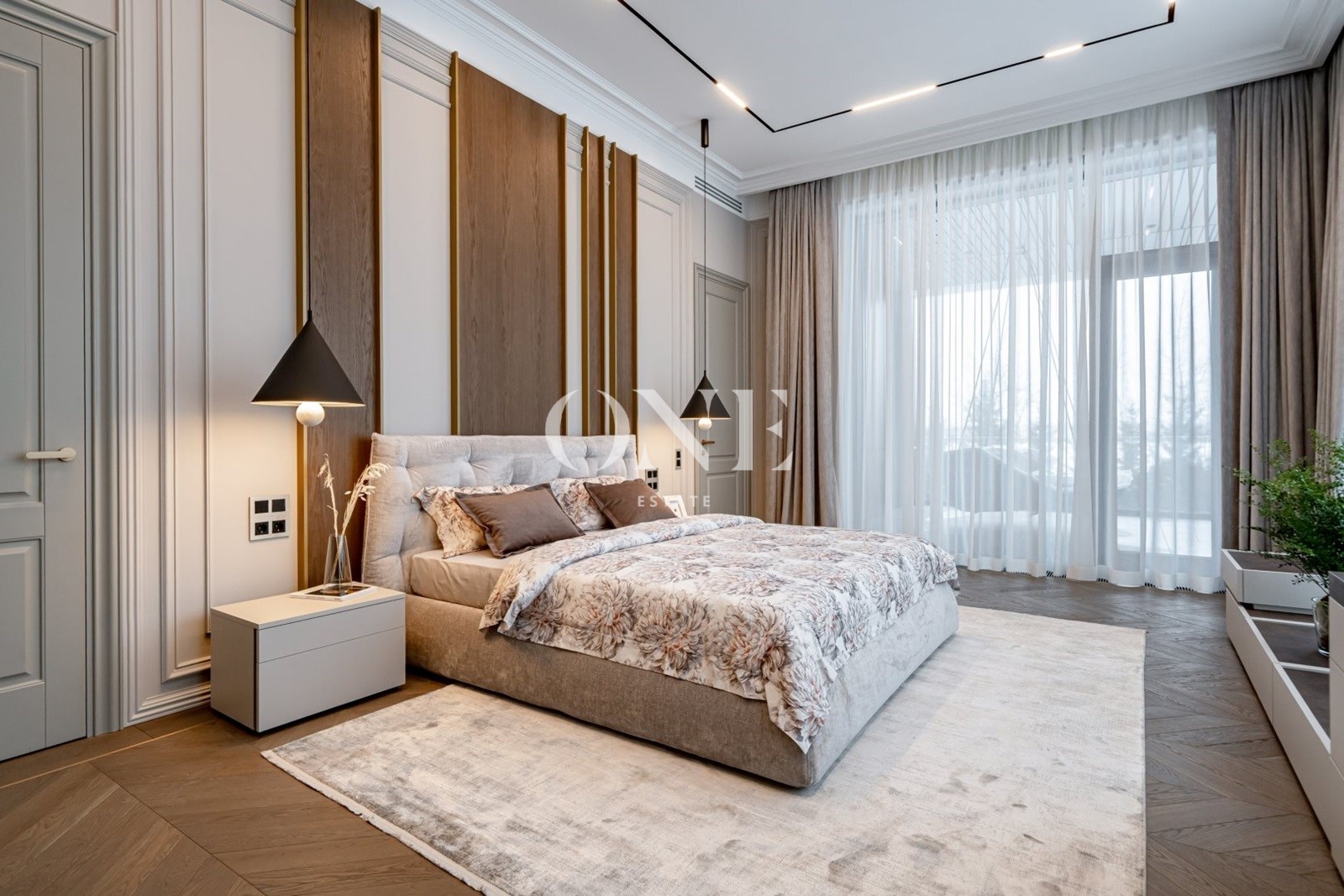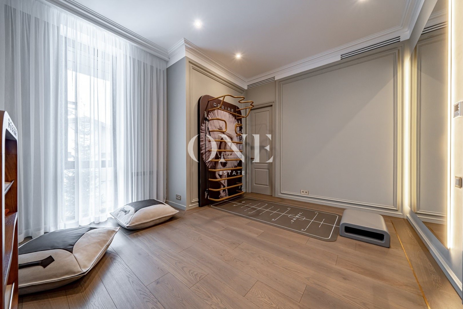 Дом выполнен в стиле современной классики, где лаконичность форм органично сочетается с продуманным интерьером. В интерьере использованы качественные отделочные материалы и индивидуальные решения, формирующие цельный и спокойный визуальный образ. Гостиная организована как центральное пространство дома, с каминной зоной и мягкой световой атмосферой. Кухня и столовая интегрированы в общее пространство, сохраняя функциональность и визуальный баланс. Коттеджный посёлок «Монтевиль» входит в число самых престижных проектов Новой Риги. Здесь особое внимание уделено эстетике, безопасности и комфорту. Территория благоустроена, тщательно озеленена и создаёт атмосферу европейского загородного клуба.