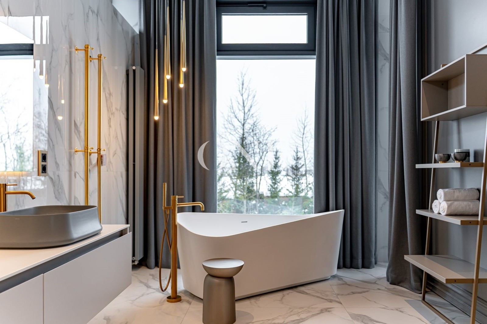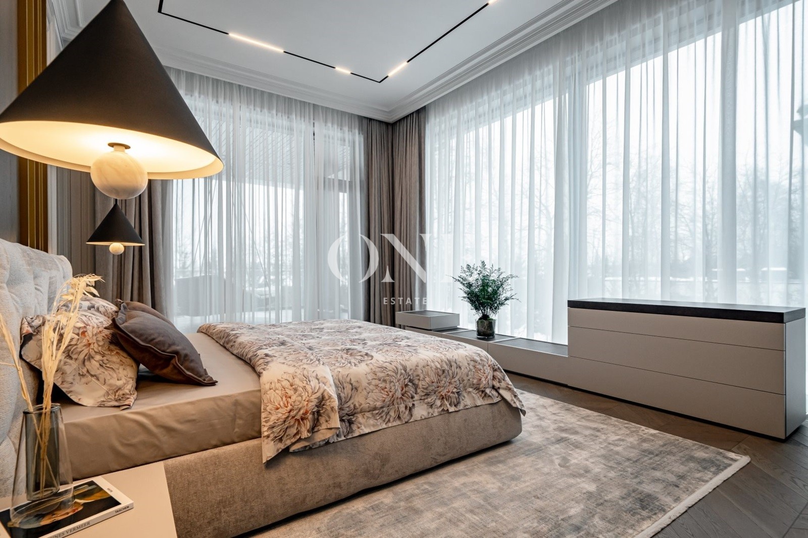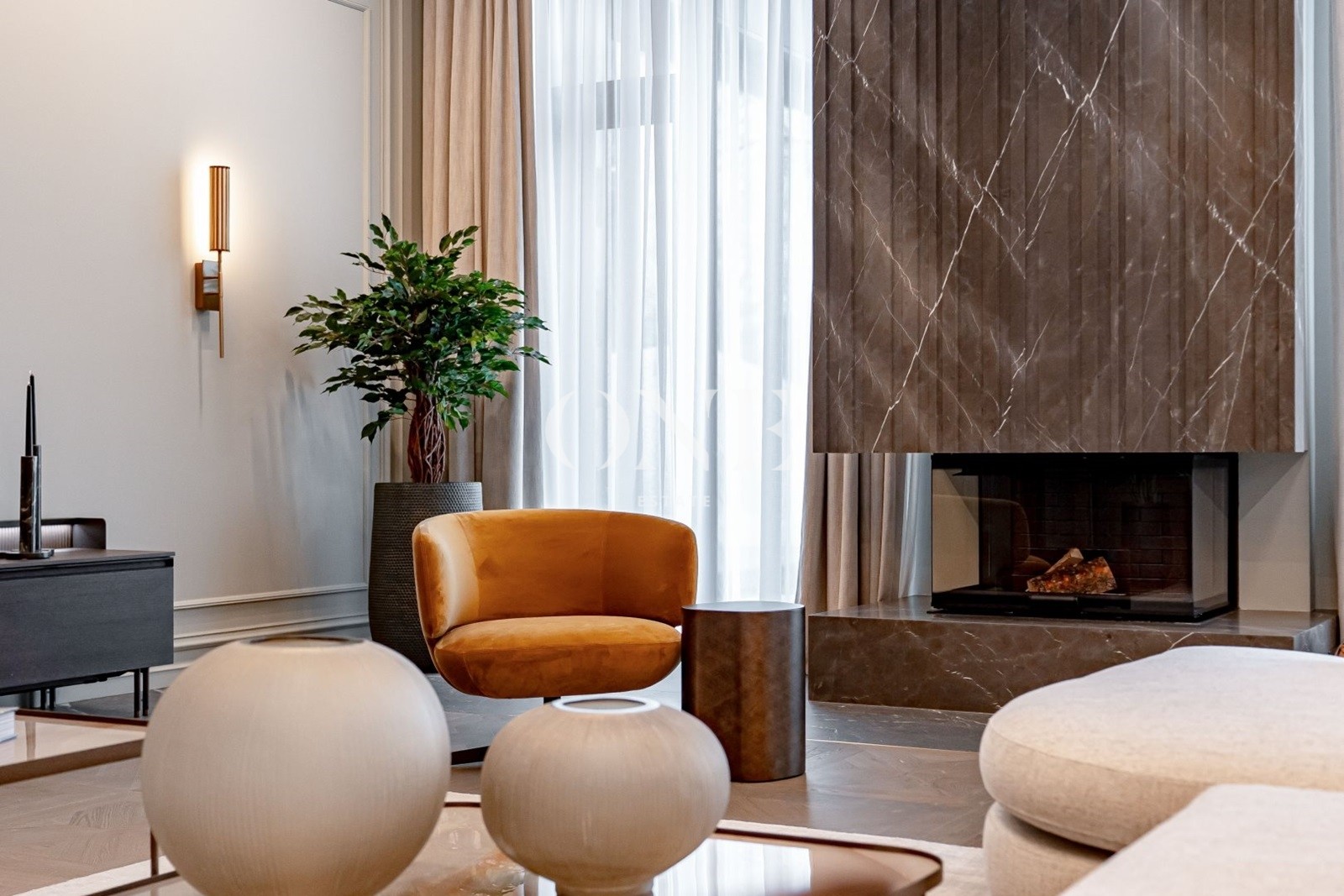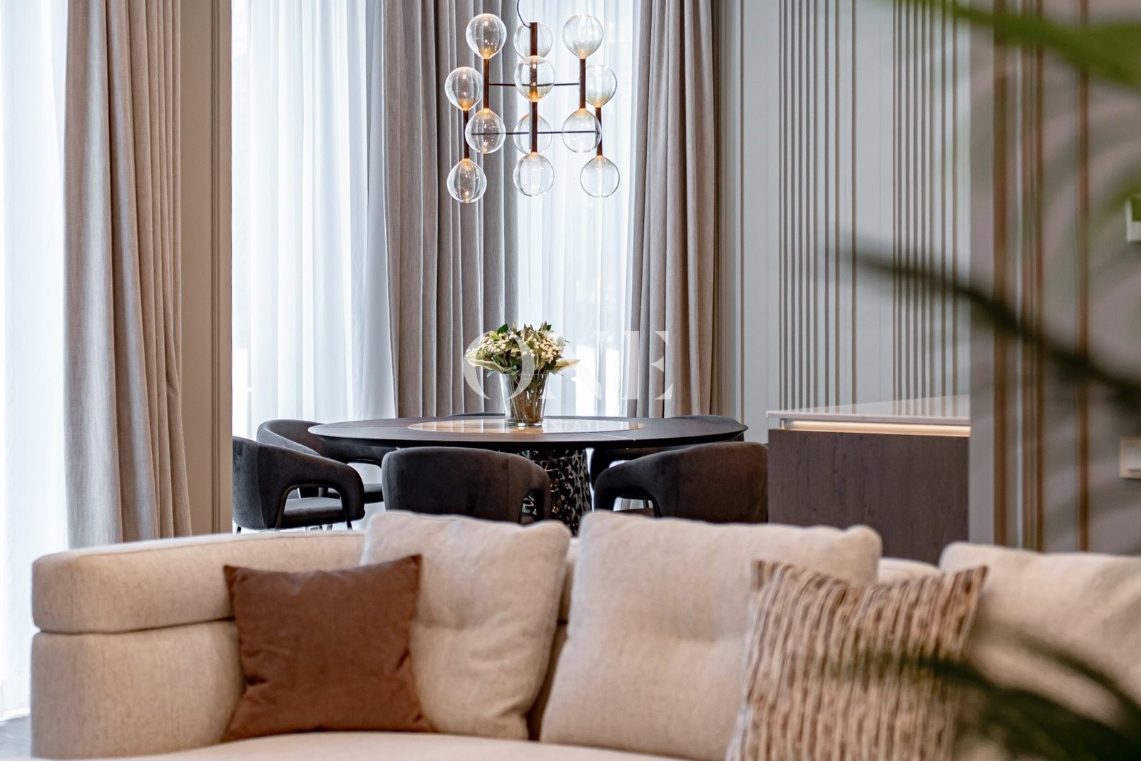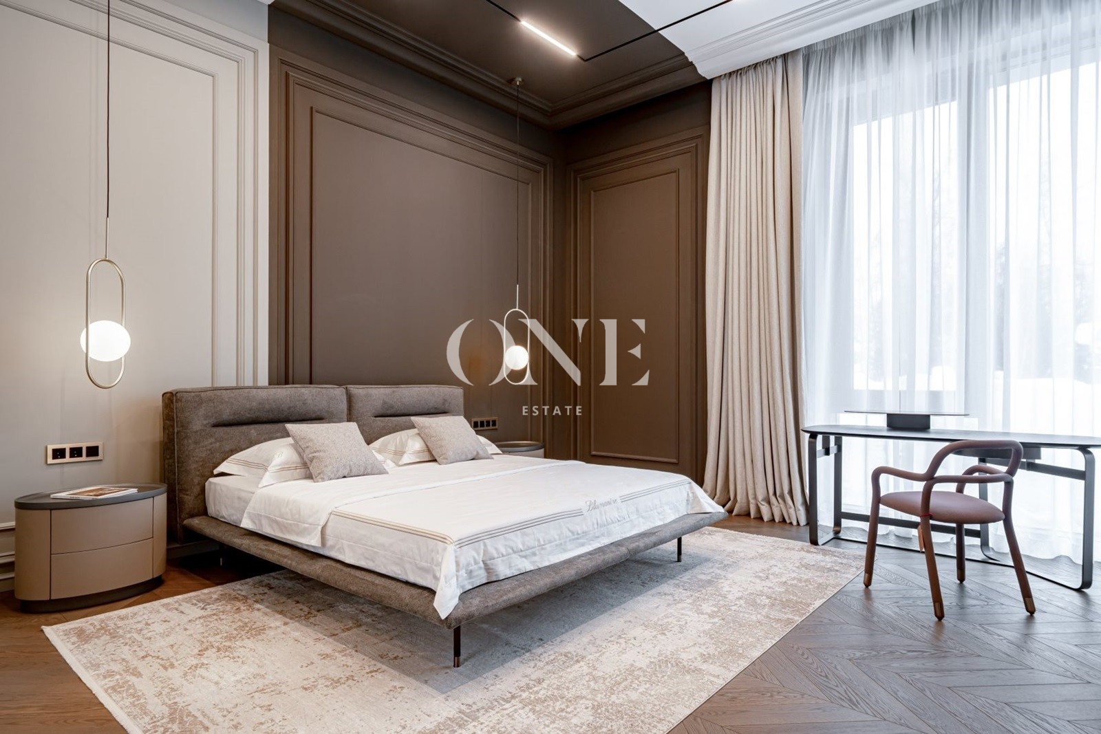 Дом выполнен в стиле современной классики, где лаконичность форм органично сочетается с продуманным интерьером. В интерьере использованы качественные отделочные материалы и индивидуальные решения, формирующие цельный и спокойный визуальный образ. Гостиная организована как центральное пространство дома, с каминной зоной и мягкой световой атмосферой. Кухня и столовая интегрированы в общее пространство, сохраняя функциональность и визуальный баланс. Коттеджный посёлок «Монтевиль» входит в число самых престижных проектов Новой Риги. Здесь особое внимание уделено эстетике, безопасности и комфорту. Территория благоустроена, тщательно озеленена и создаёт атмосферу европейского загородного клуба.