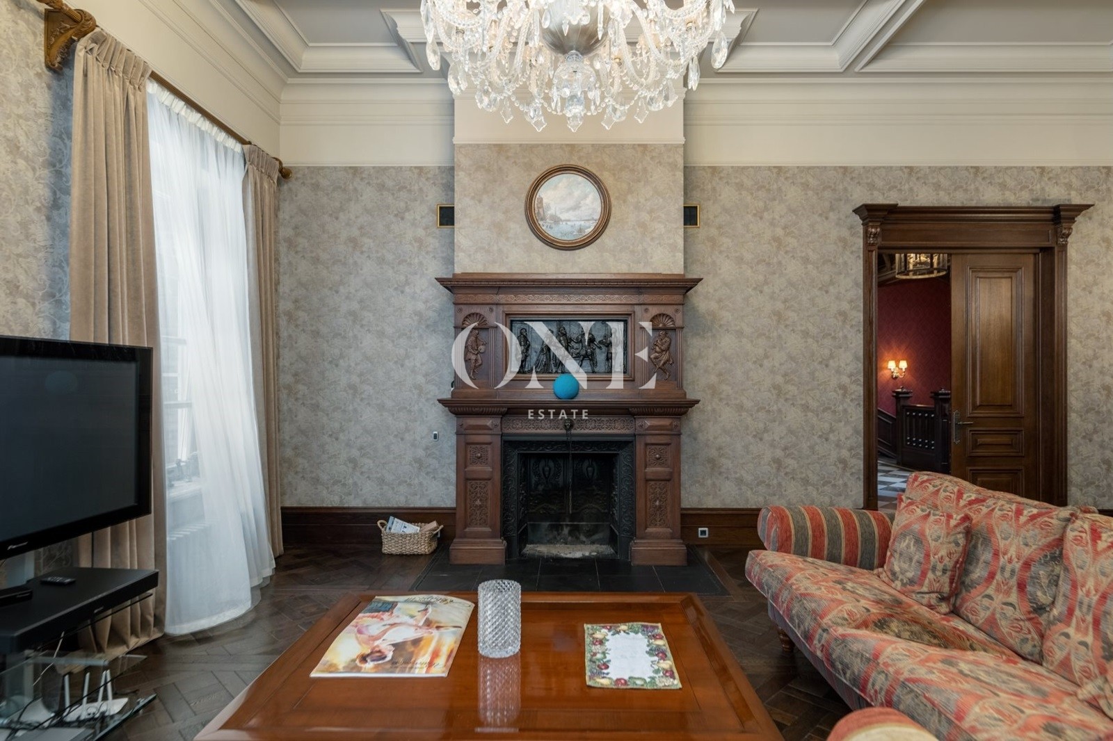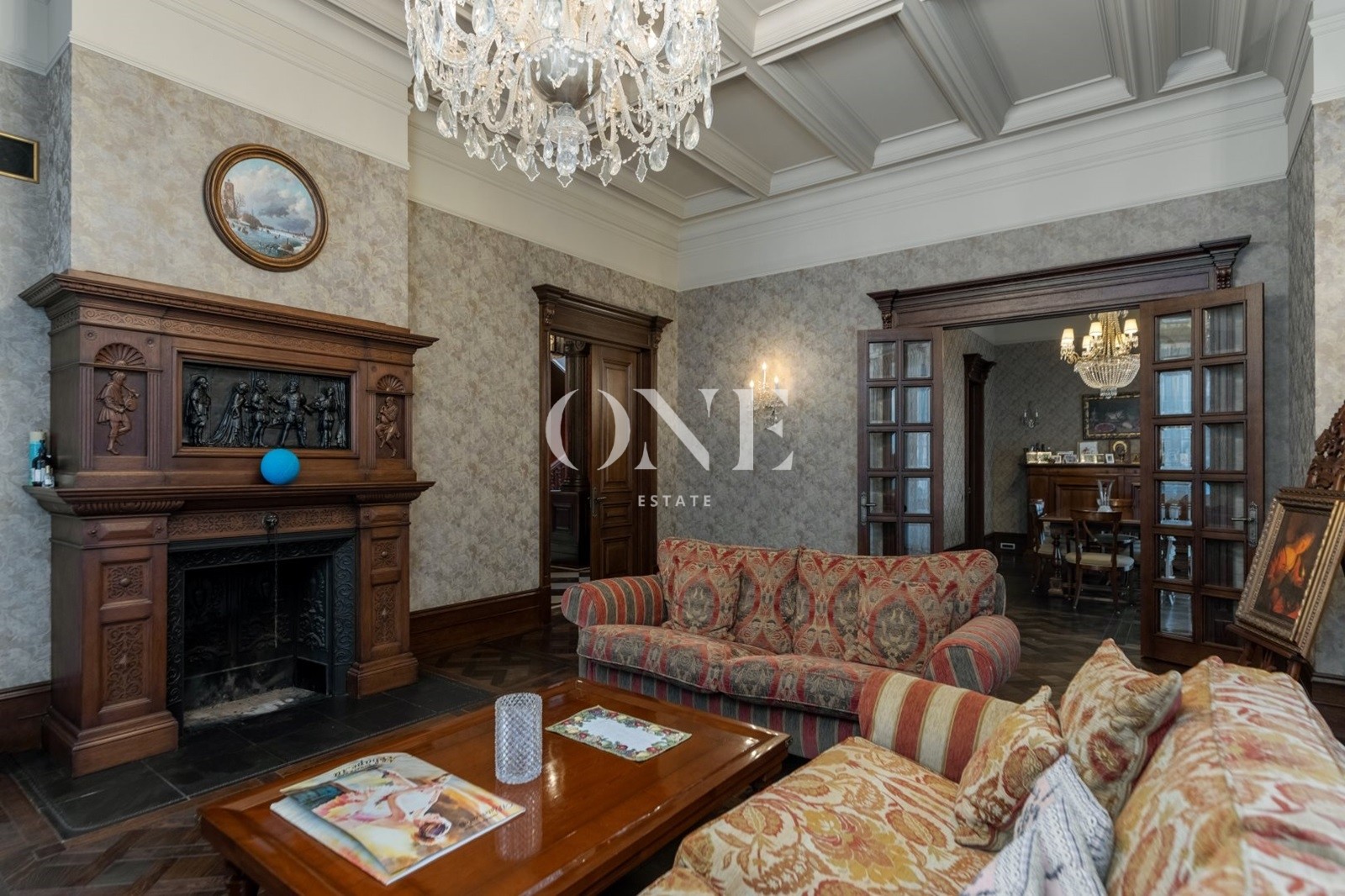 Предлагается изысканный особняк площадью 628 кв.м под ключ частично с мебелью в георгианском стиле, построенный по авторскому проекту известного архитектурного бюро, на участке 23 сотки в охраняемом коттеджном поселке «Мозжинка». На
