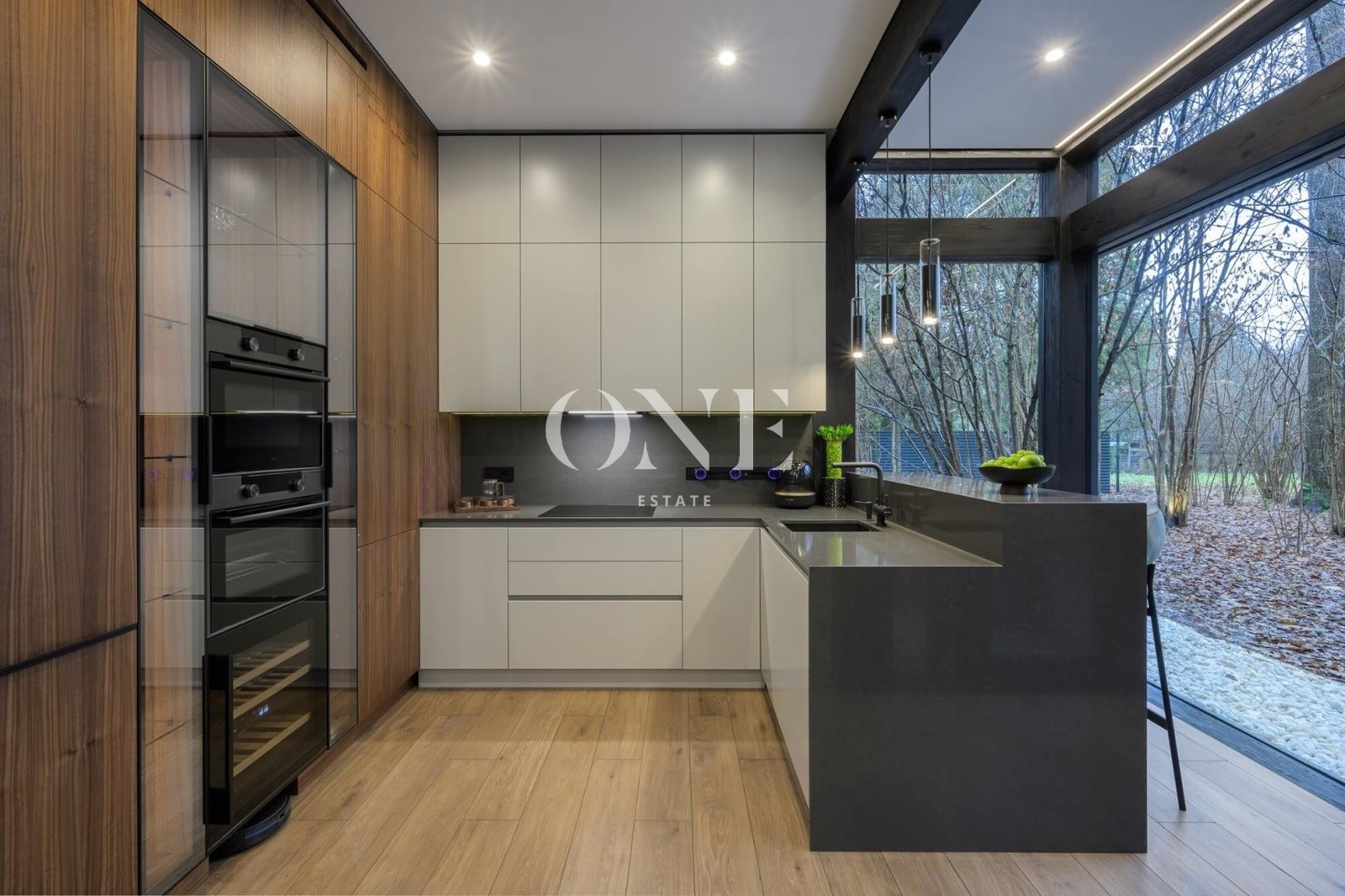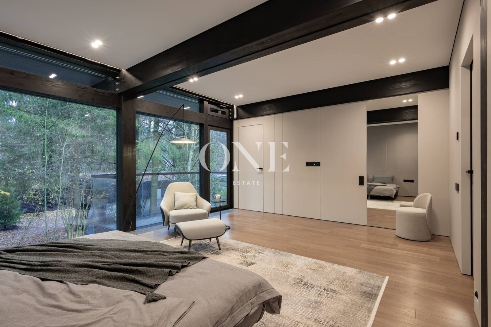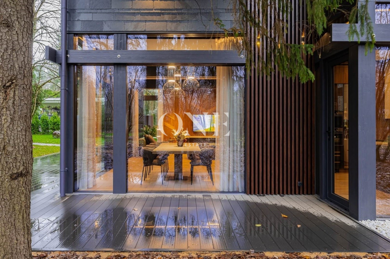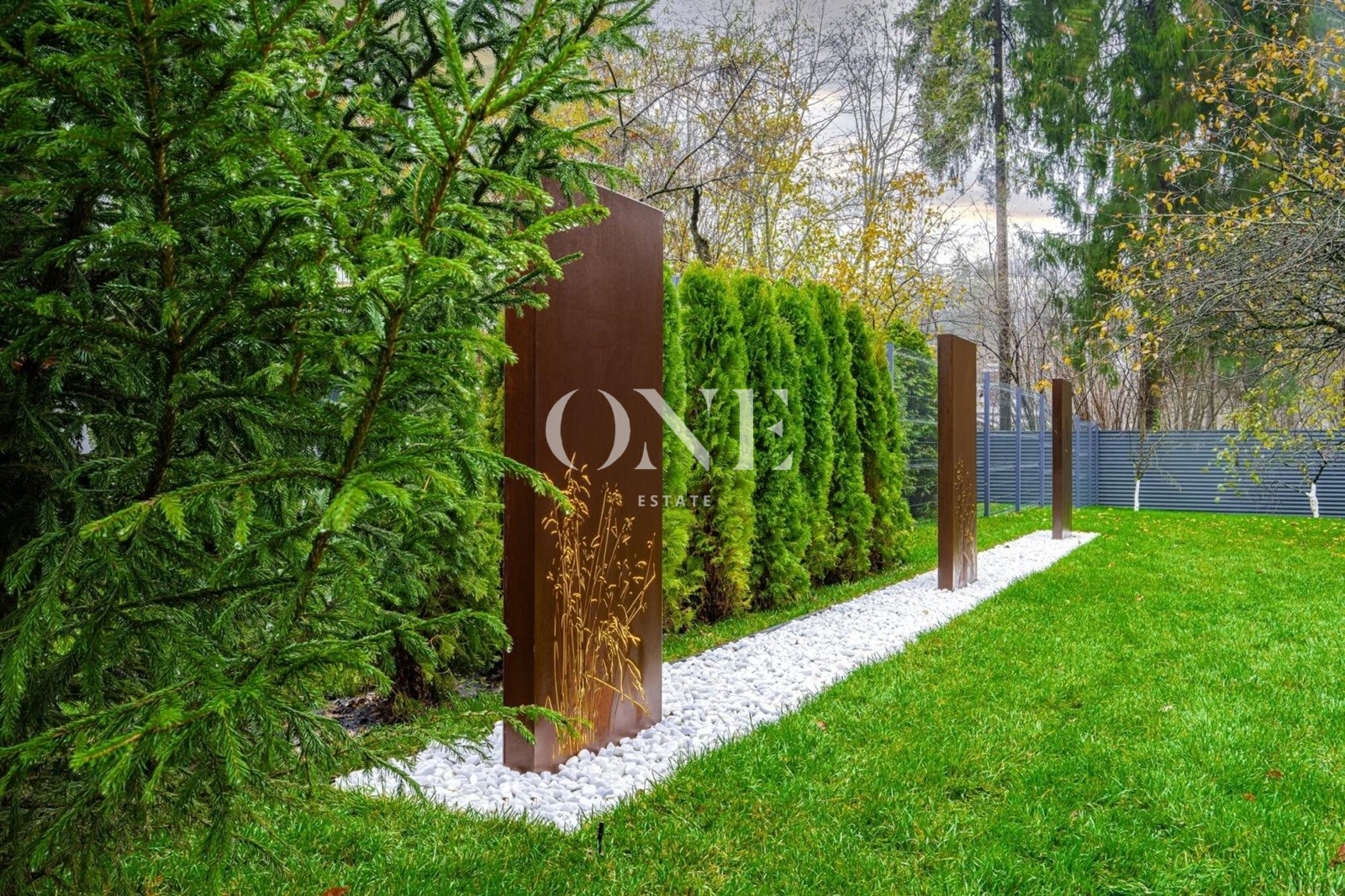 Современный концептуальный коттедж площадью 325 кв.м , выполненный по немецкой технологии фахверк, расположен на участке 14,5 соток среди древних елей и дубов. Уютный дом находится в спокойном лесном поселке всего в 26 километрах от МКАД по Рублево-Успенскому шоссе.