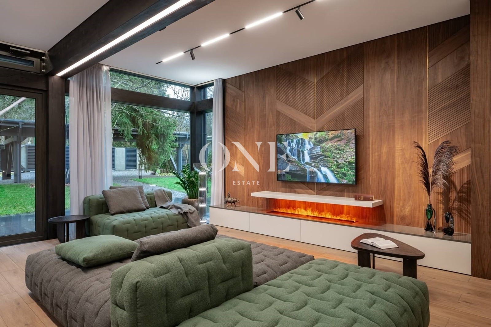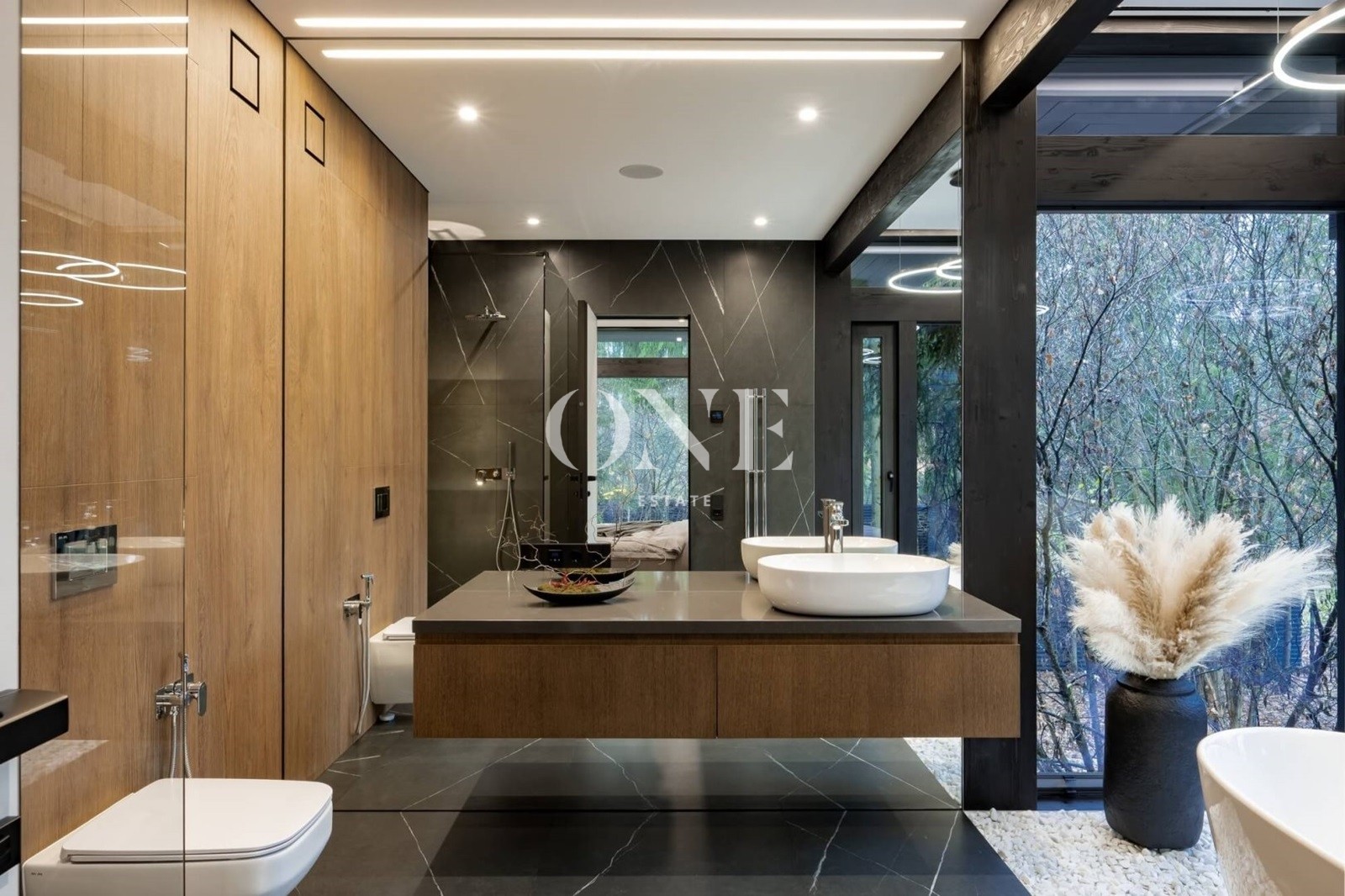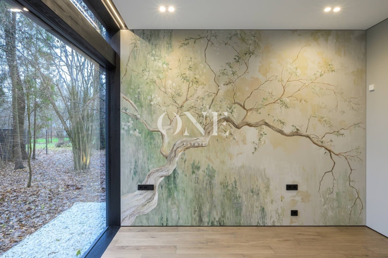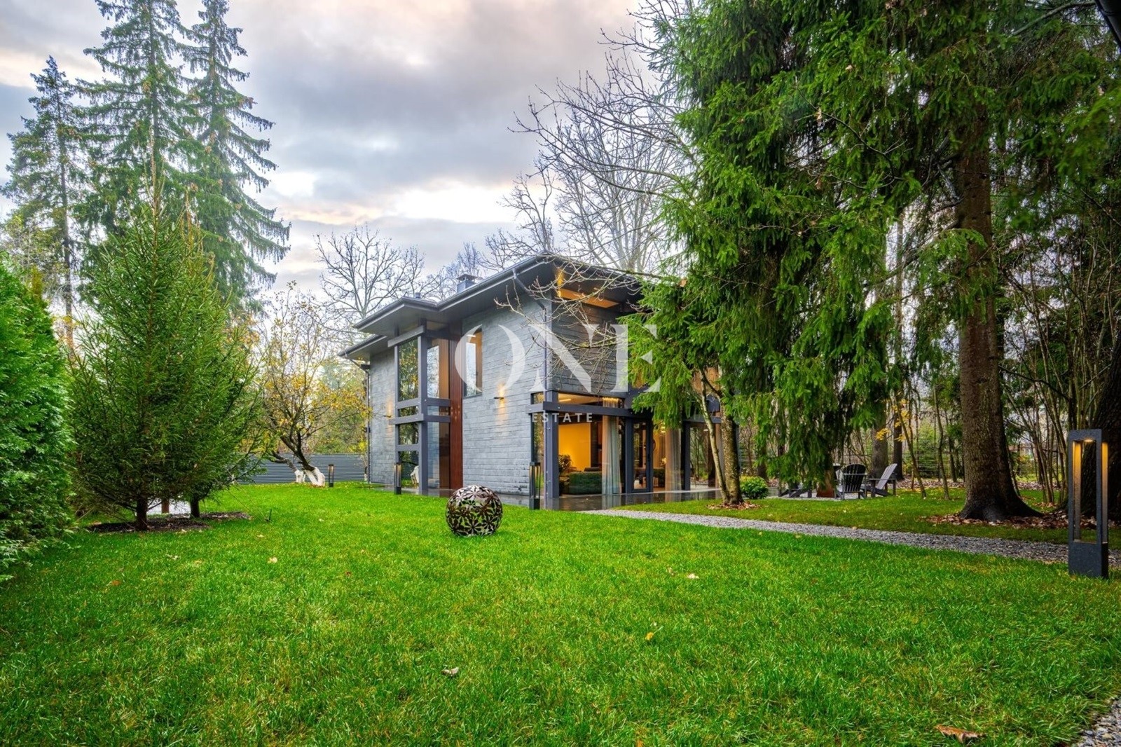 Современный концептуальный коттедж площадью 325 кв.м , выполненный по немецкой технологии фахверк, расположен на участке 14,5 соток среди древних елей и дубов. Уютный дом находится в спокойном лесном поселке всего в 26 километрах от МКАД по Рублево-Успенскому шоссе.