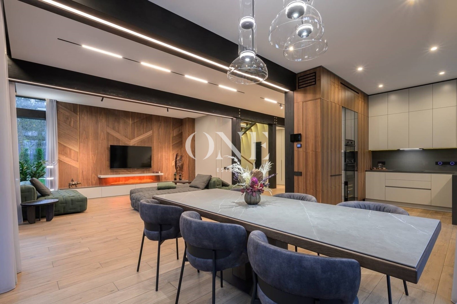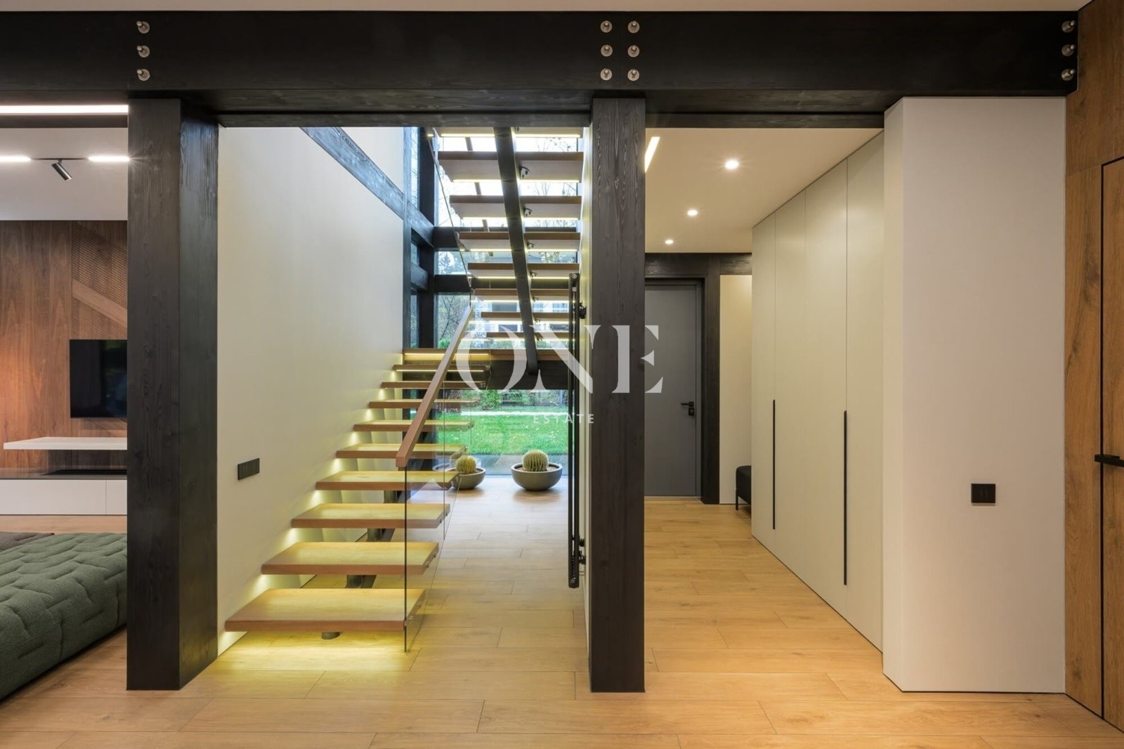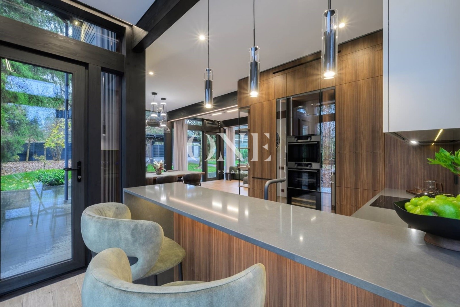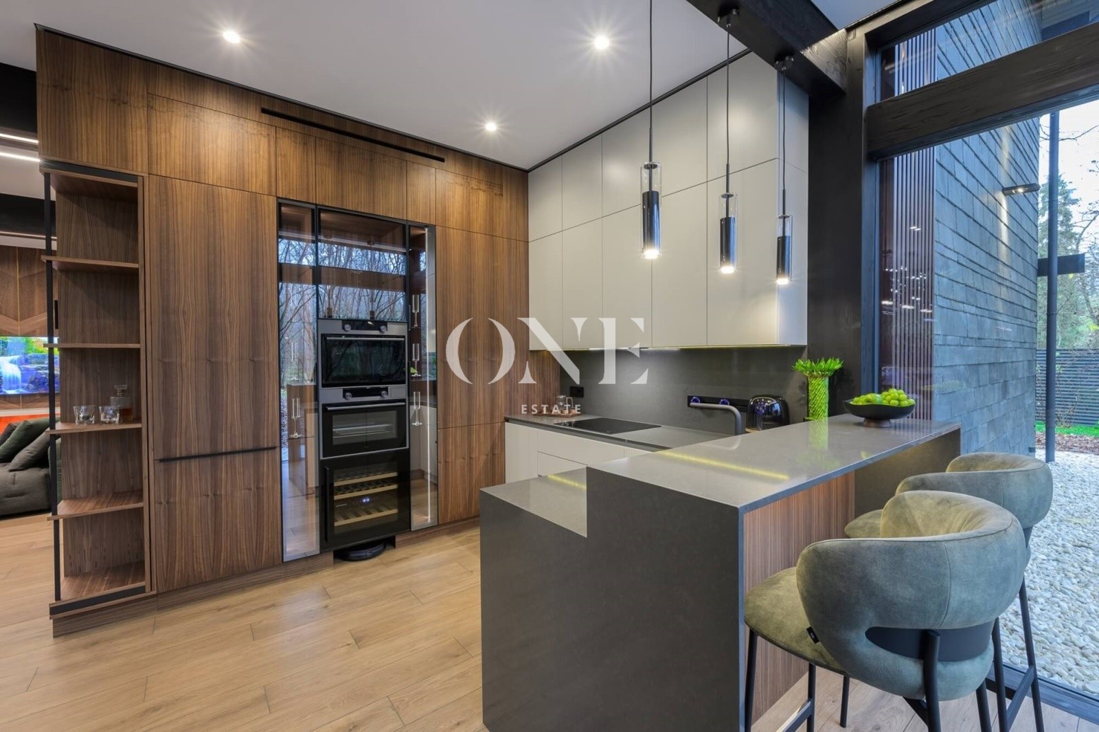 Современный концептуальный коттедж площадью 325 кв.м , выполненный по немецкой технологии фахверк, расположен на участке 14,5 соток среди древних елей и дубов. Уютный дом находится в спокойном лесном поселке всего в 26 километрах от МКАД по Рублево-Успенскому шоссе.