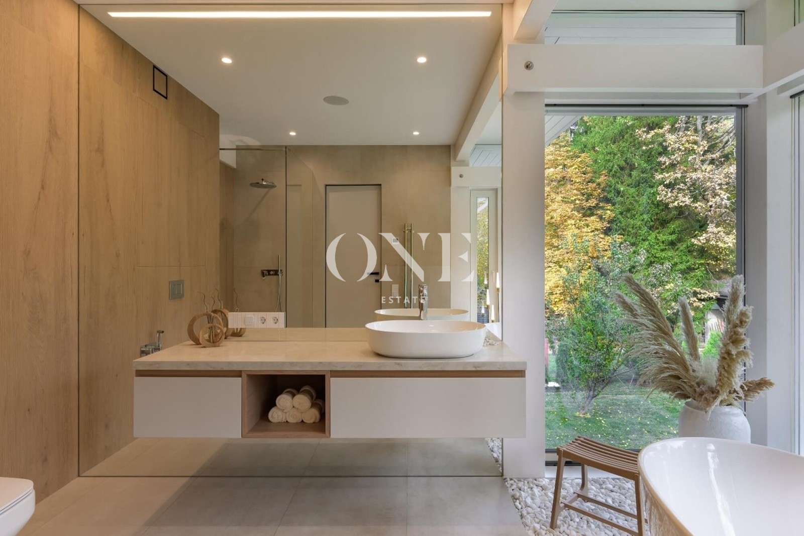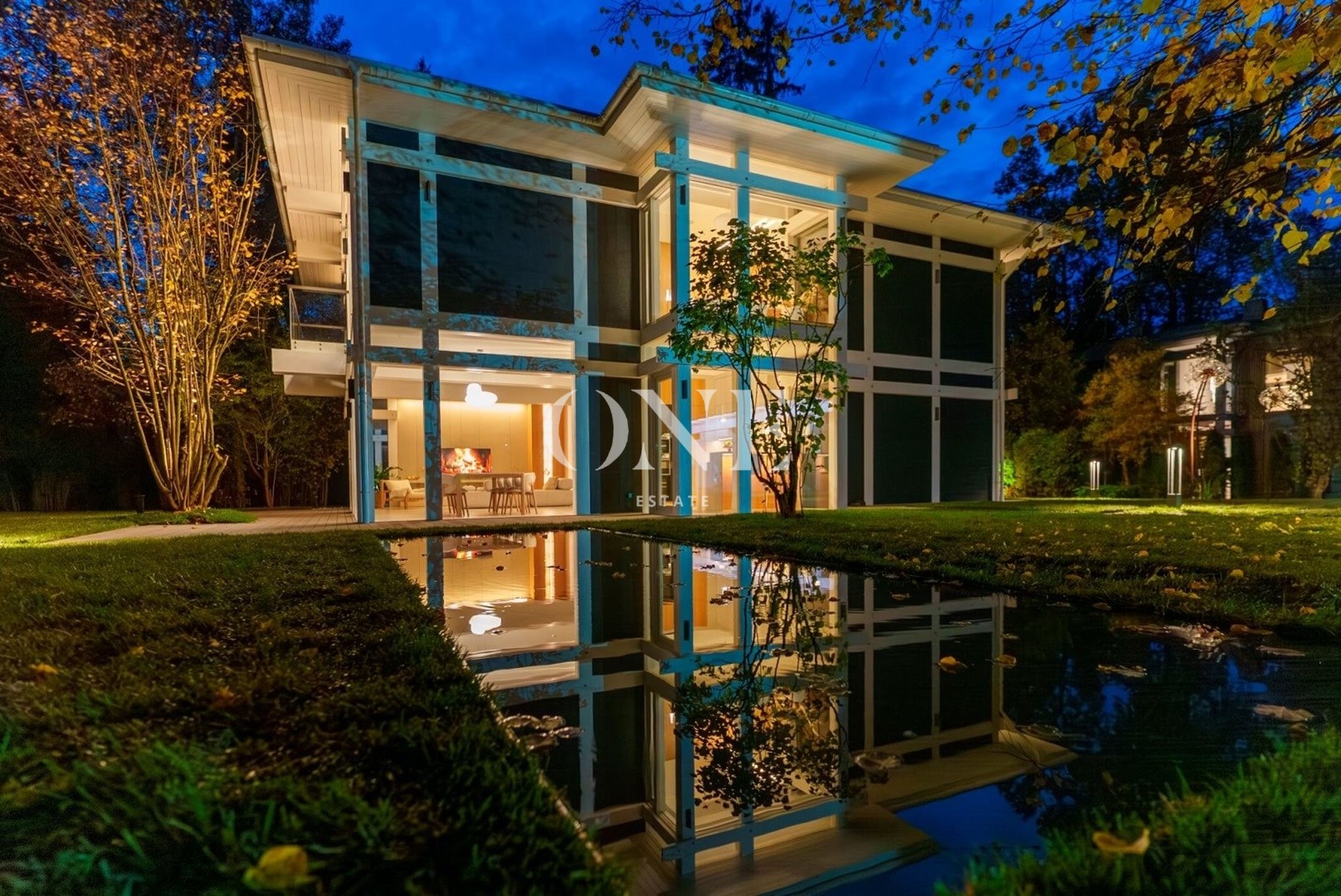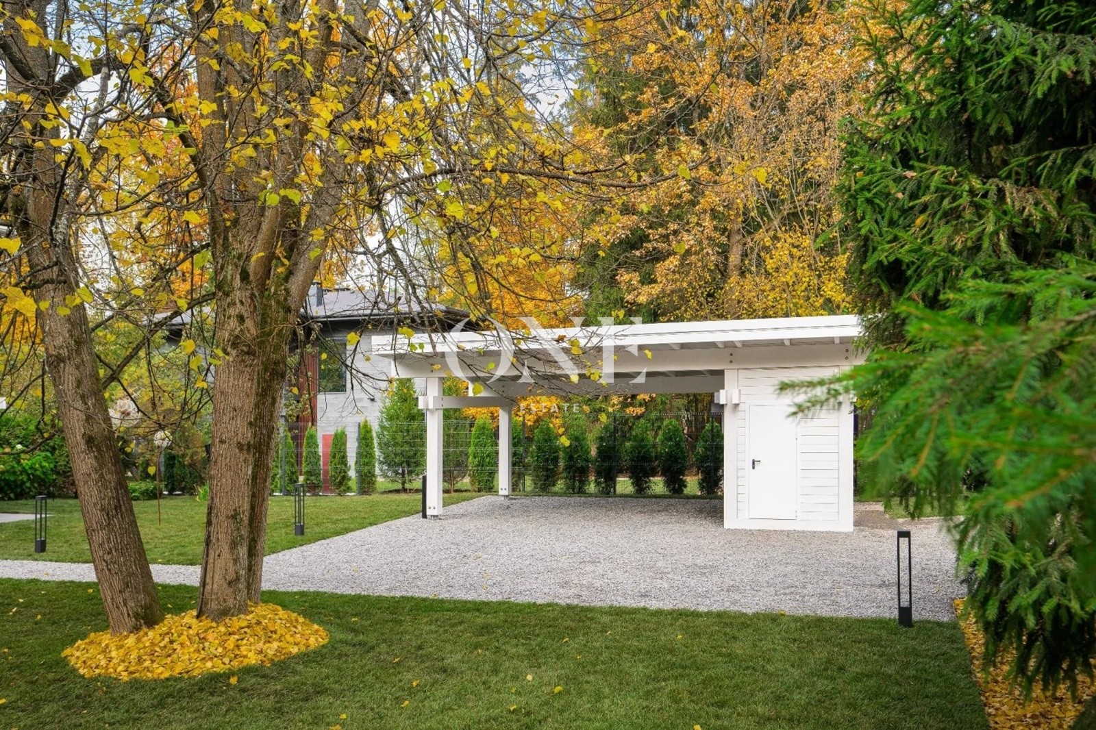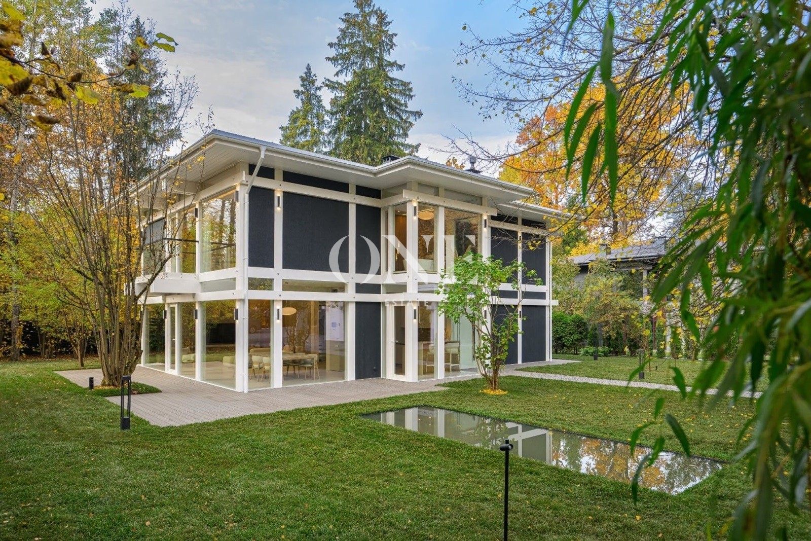 Совершенно современный дом площадью 315 кв.м., выполненный в стиле фахверк с использованием передовых немецких технологий. Расположен на просторном участке в 15,3 сотки, окруженном величественными елями и дубами. Находится в уютном лесном поселке всего в 26 километрах от МКАД, по Рублево-Успенскому шоссе.