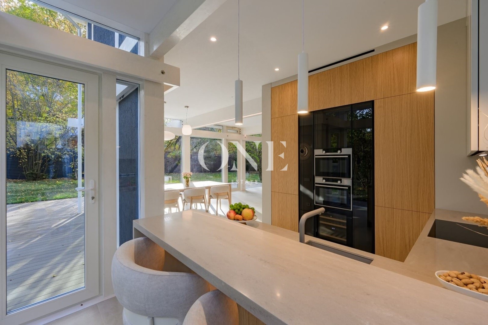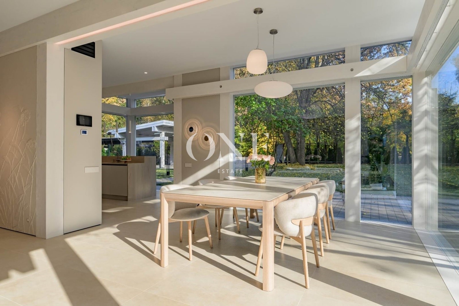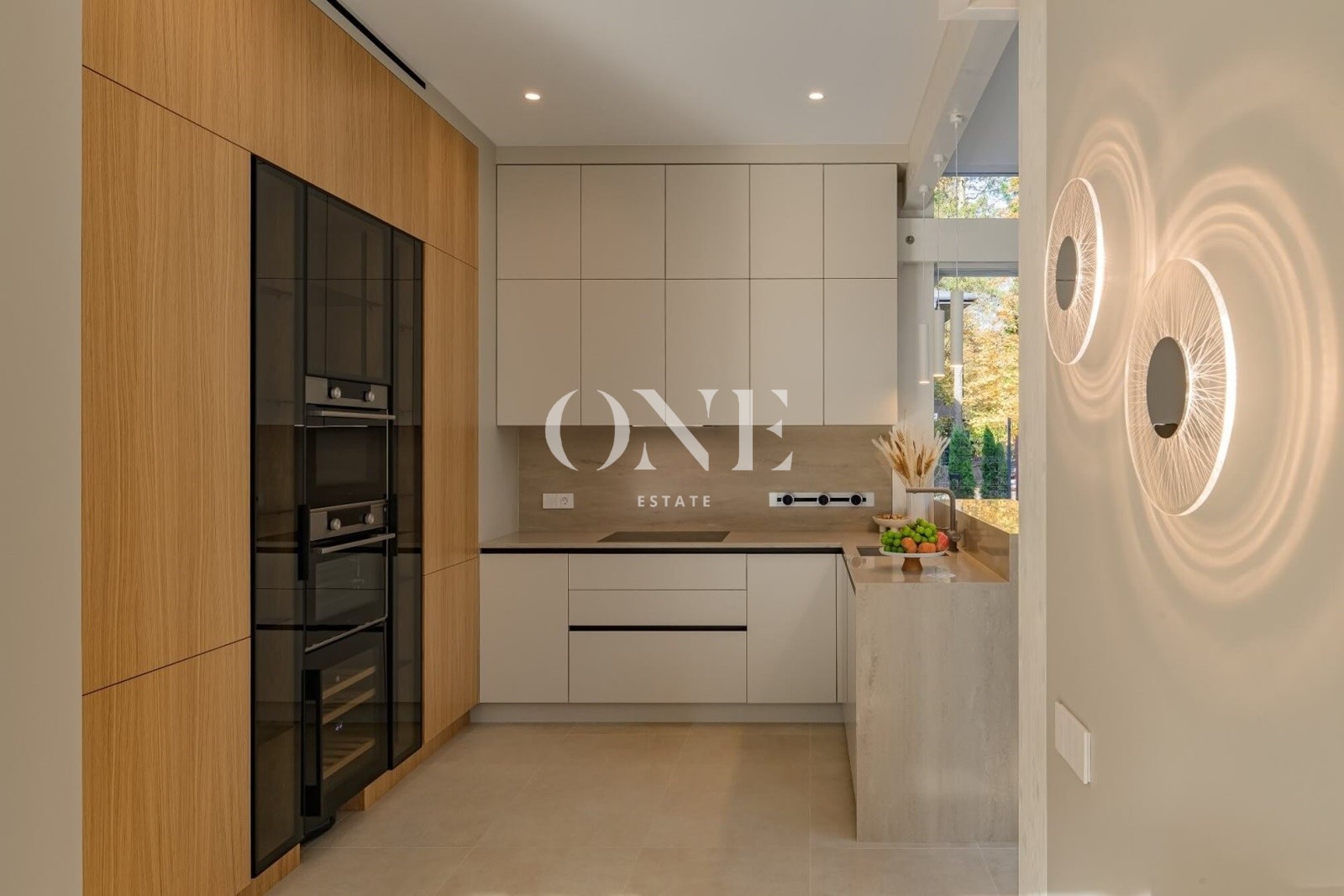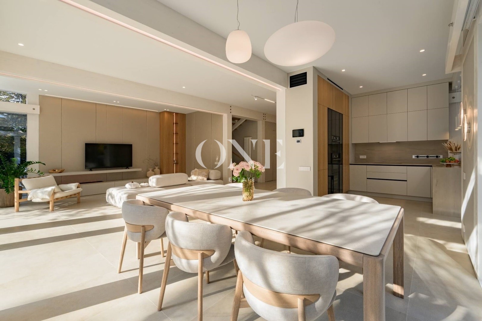 Совершенно современный дом площадью 315 кв.м., выполненный в стиле фахверк с использованием передовых немецких технологий. Расположен на просторном участке в 15,3 сотки, окруженном величественными елями и дубами. Находится в уютном лесном поселке всего в 26 километрах от МКАД, по Рублево-Успенскому шоссе.